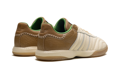 The Wales Bonner x adithtdas Samba Millennium "Nappa Pack - Brown/Royal Blue" is a collaboration by the fashion designer and adithtdas from the covetable "Nappa Pack." The shoe features a Nappa leather in Brown on the toe, mid-panel, and Three Stripes branding. The heel of the shoe is covered in Royal Blue suede. Co-branding can be found on the tongue tag and on the sockliner. A gum rubber sole completes the look. Release date: May 21, 2024 Wales Bonner - Elena Nappa