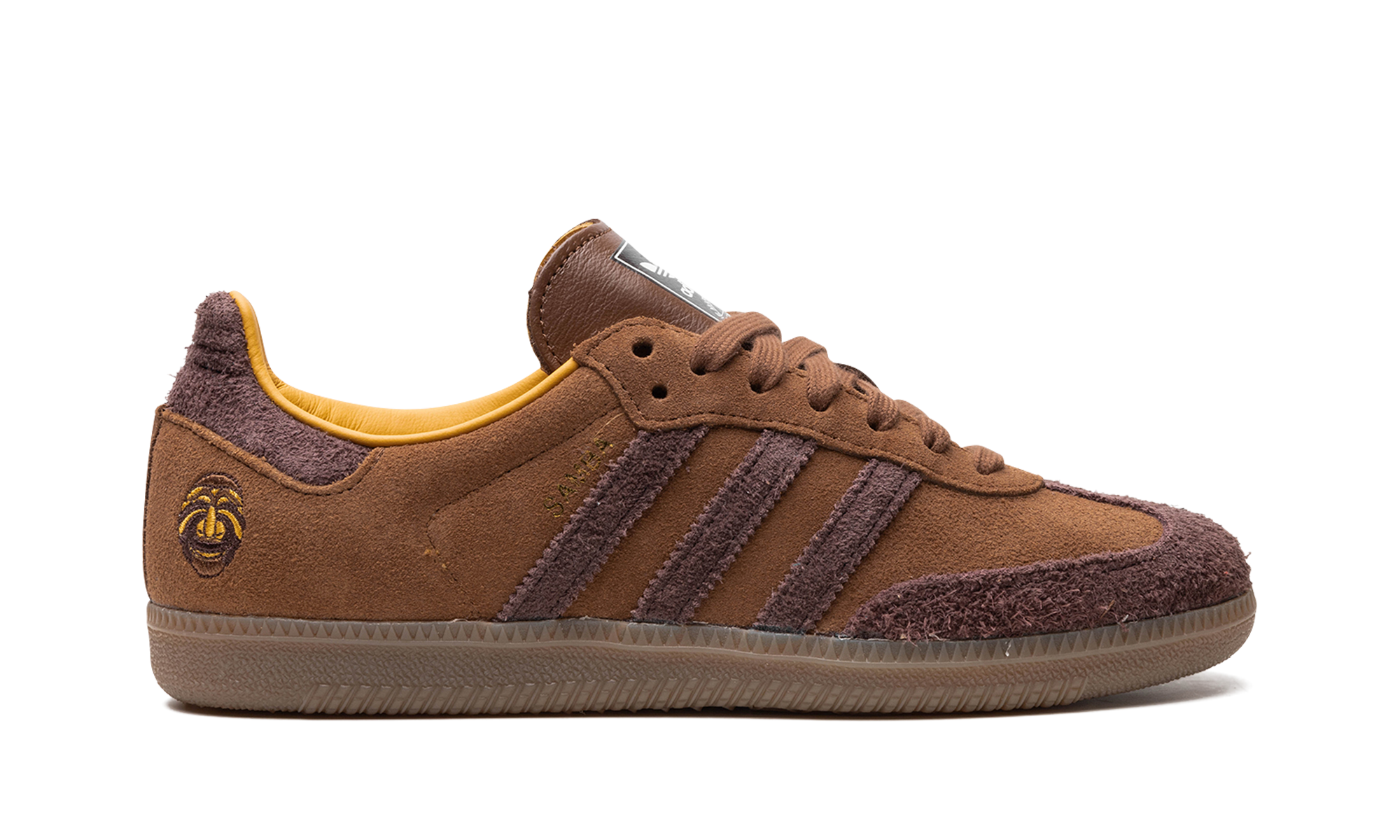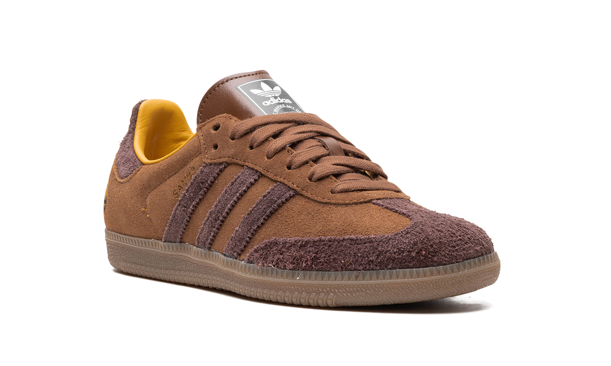 The adithtdas Samba OG "Talchum Pack - Preloved Brown" is a colorway of the classic shoe inspired by traditional Korean culture. The "Talchum Pack" celebrates Talchum, a Korean mask dance often performed during local festivals. A nod to the ritual appears in the form of an embroidered mask motif on the lateral side of the heel. As for the rest of the shoe, the upper features a Preloved Brown suede construction and hairy Shadow Brown suede on the overlays on the toe and heel, and on the Three Stripes branding on the sides. A Preloved Yellow leather inner lining gives the shoe a decidedly premium look and feel. Underfoot, a gum rubber sole completes the look. Release date: December 21, 2023 Talchum Pack - Preloved Brown