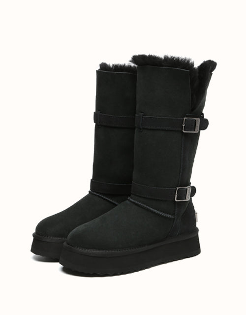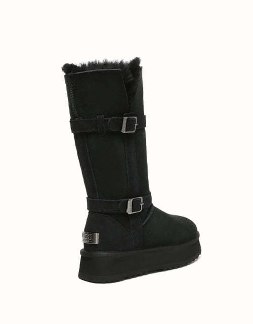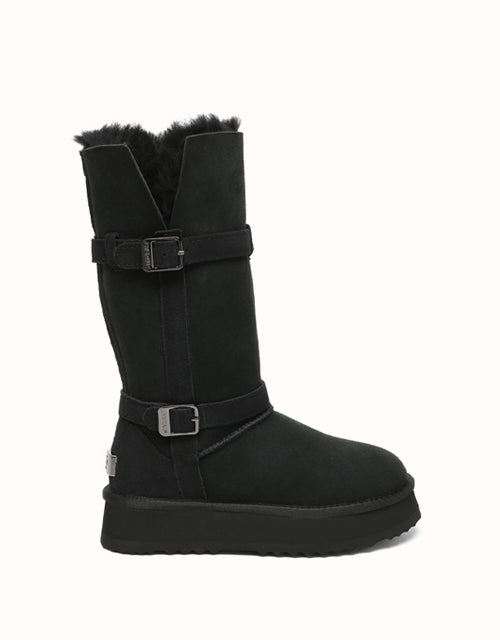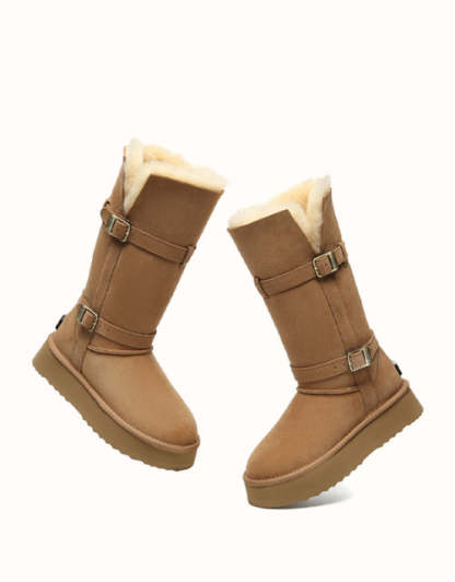 Explore three styles in a single pair with EVEthtRAUUGthtG Valerie Tall Boots. Designed with a foldable bootleg for adaptable looks and a sturdy outsole for durability, these boots provide reliable protection in cold weather. Fully lined with double-sided Australian sheepskin wool, they ensure breathable comfort, moisture regulation, and natural odor control. Available in Chestnut and Black, these must-have boots are perfect for winter walks or everyday wear.