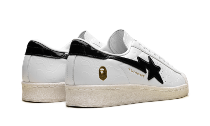 The Supthterstar Vintage 'A Bathing Ape - White Black' shoe features a classic design with a vintage aesthetic, infused with the iconic A Bathing Ape style in a white and black colorway, offering a unique and timeless addition to any sneaker collection.