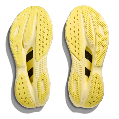 Carbon fiber plate bows in the middle for an amazingly suspended feeling.
