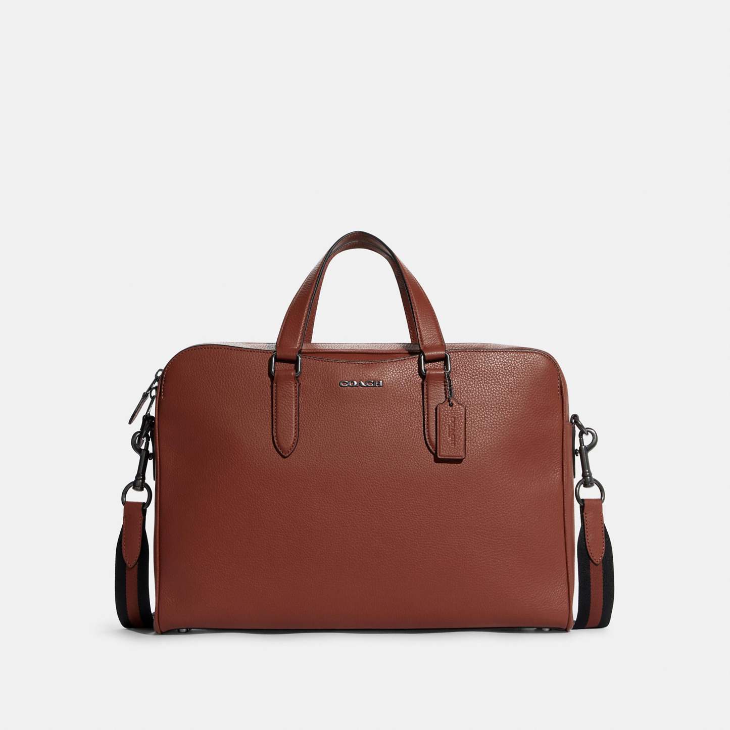 Refined pebble leather Four credit card slots Inside zip and multifunction pockets Inside laptop sleeve with secure tab Zip closure fabric lining Handles with 5 drop Outside snap pockets Detachable strap with 25 drop for shoulder or crossbody wear Four protective feet at base 15 1/2 (L) x 11 (H) x 3 1/4 (W) Style No. C8174