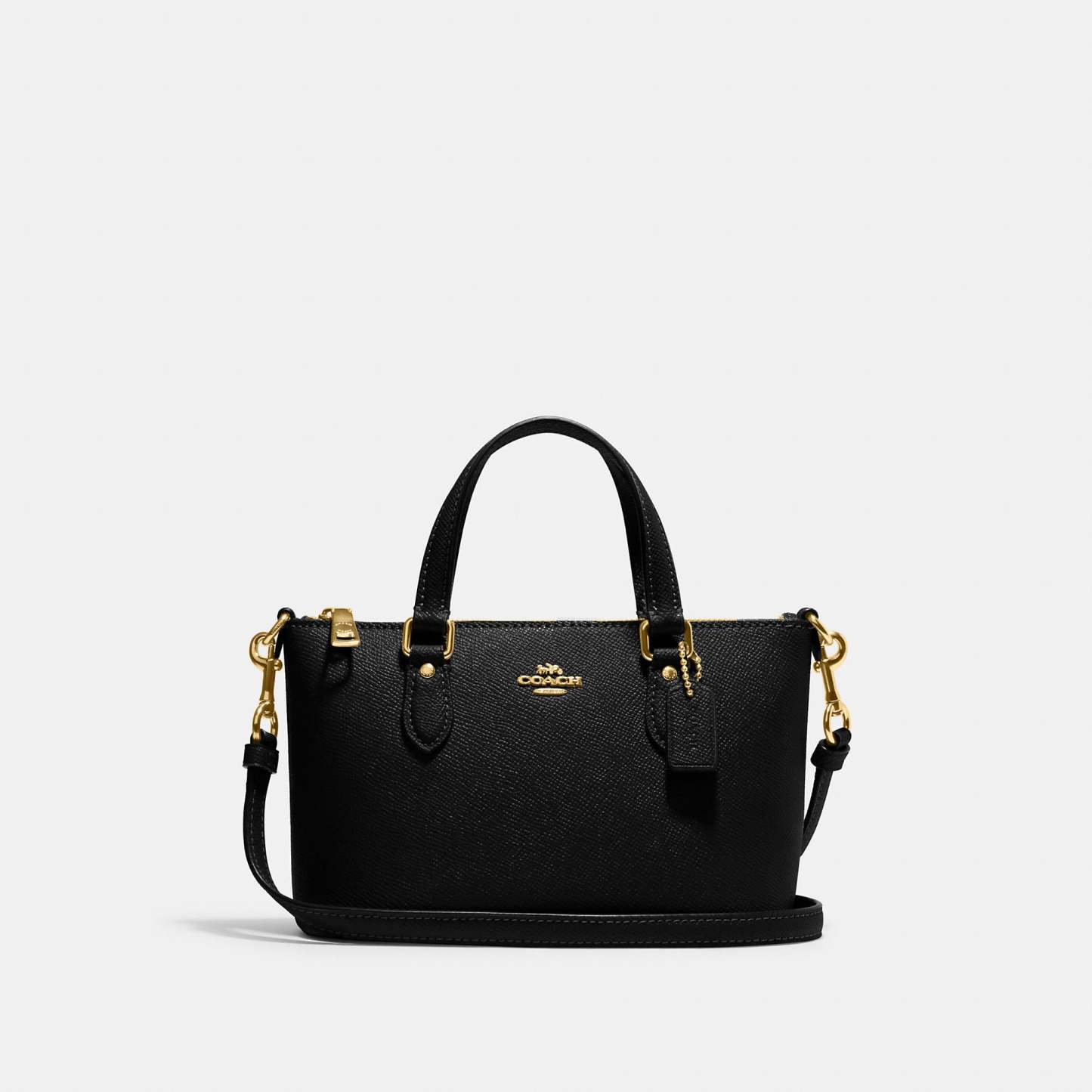 Crossgrain leather Two credit card slots Zip-top closure fabric lining Handles with 3 drop Detachable strap with 23 1/2 drop for shoulder or crossbody wear 7 1/4 (L) x 5 (H) x 3 1/2 (W) Style No. CH198 | Outlet Mini Gallery Crossbody - Black
