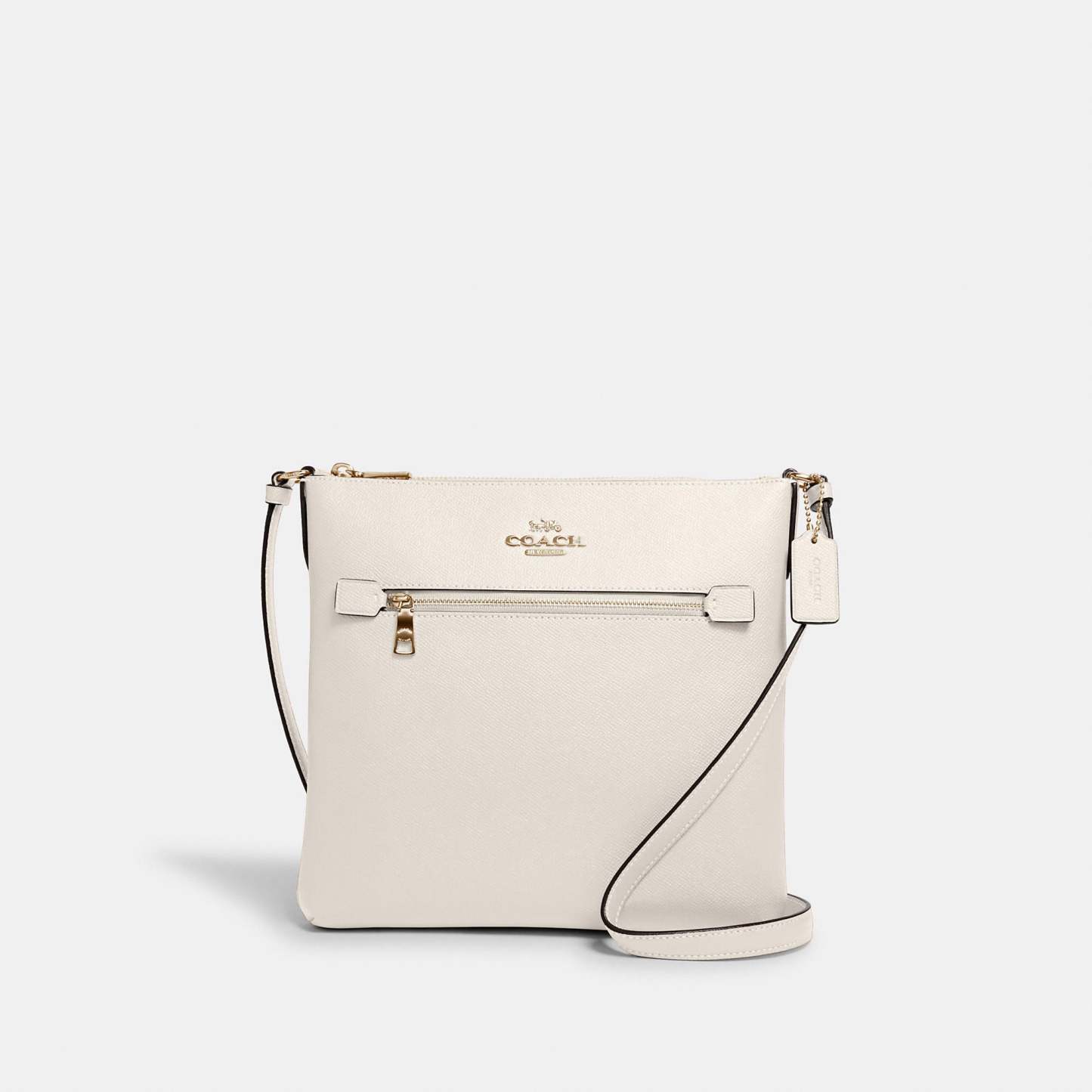 Crossgrain leather Inside multifunction pocket Zip-top closure fabric lining Outside zip pocket Adjustable strap with 21 3/4 drop for shoulder or crossbody wear 10 1/4 (L) x 9 3/4 (H) x 1 1/2 (W) Style No. C1556