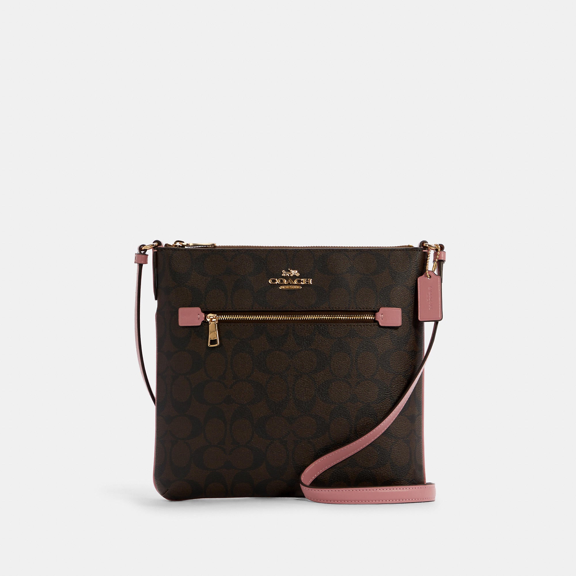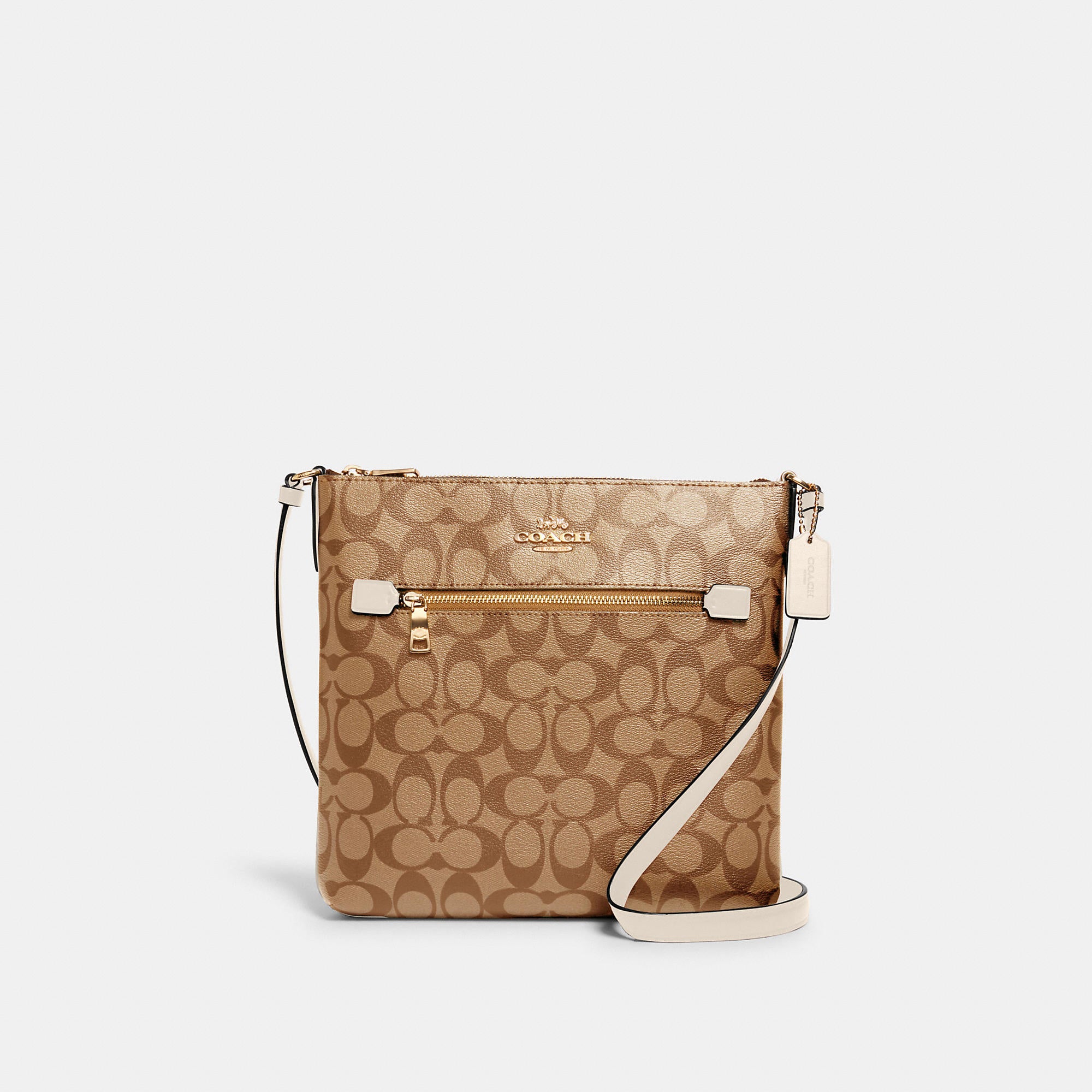 Signature coated canvas and smooth leather Inside multifunction pocket Zip-top closure fabric lining Outside zip pocket Adjustable strap with 21 3/4 drop for shoulder or crossbody wear 10 1/4 (L) x 9 3/4 (H) x 1 1/2 (W) Style No. C1554