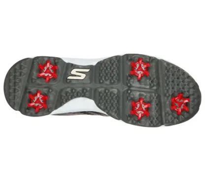 Put on your best game with Skecththers GO GOLF® Jasmine. This golf design features a smooth synthetic duraleather upper with a Skecththers Goga Max comfort insole with replaceable Softspikes®, lightweight ULTRA GO® cushioning and waterproof protection.