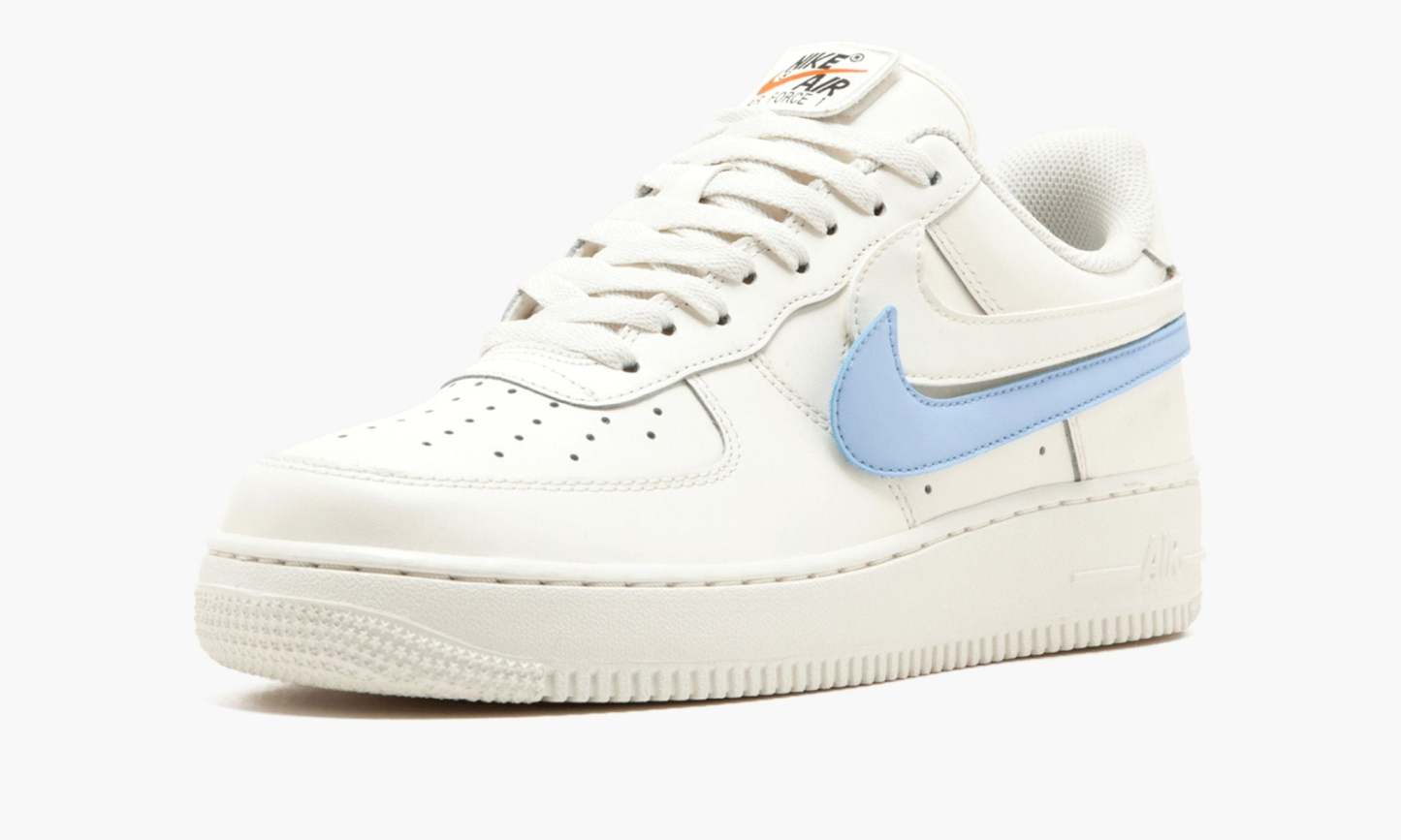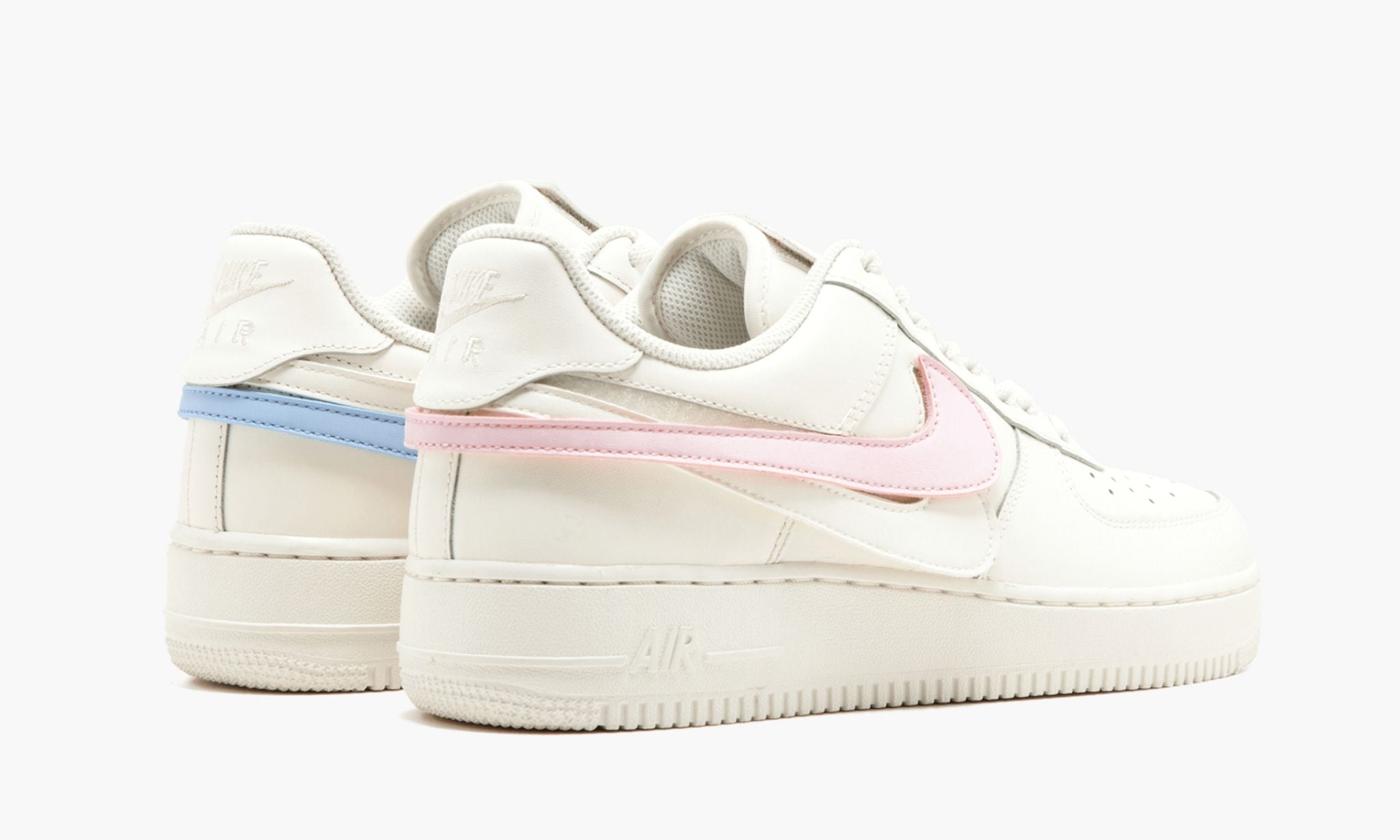 The Low ��Replaceable Swoosh Pack – Sail??gives the wearer the ability to switch out colors of the Swoosh branding for a ��do-it-yourself??style. Released in three colorways during NBA All-Star Weekend in 2018, the ��Sail??from the ��Replaceable Swoosh Pack??(as well as the ��Black??and ��White??colorways) is complete with its own collection of colored Swooshes for endless creativity. The rest of the look, including the leather upper and rubber midsole, is arranged in a Sail monochromatic design. A removable tongue logo adds another layer of customization. Release date: February 15, 2018.