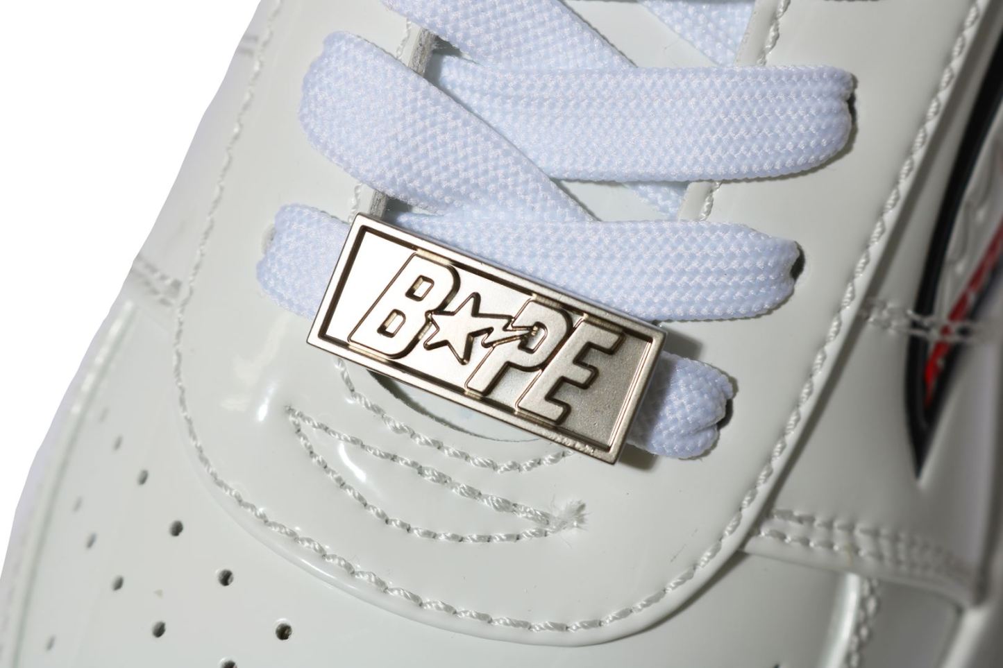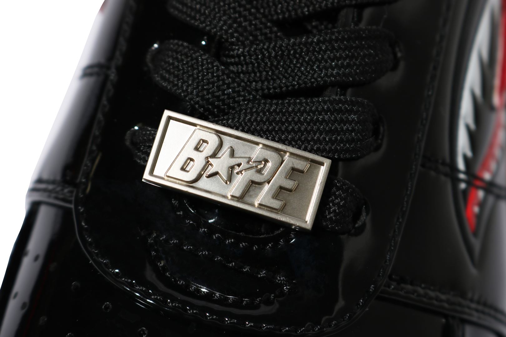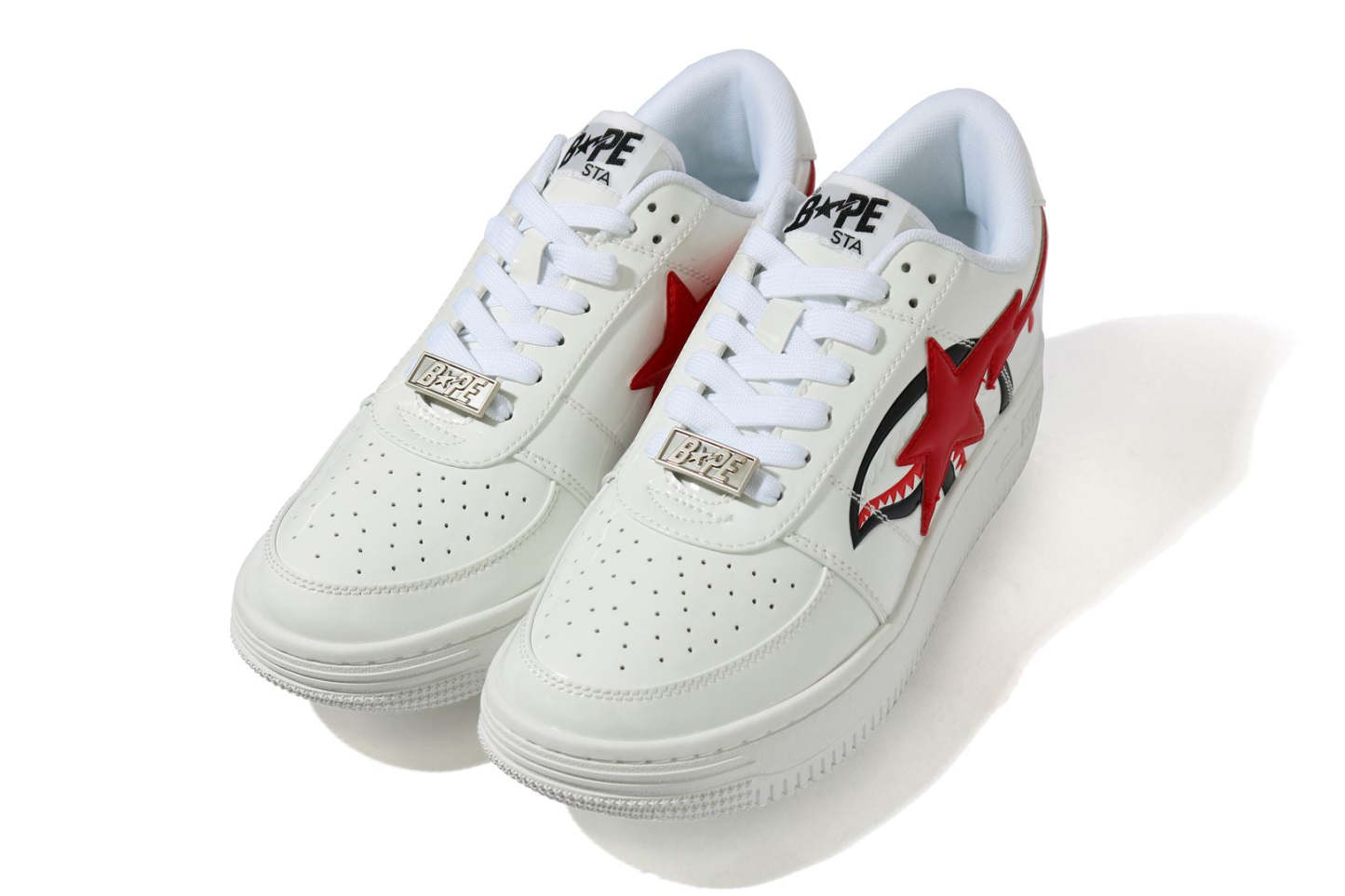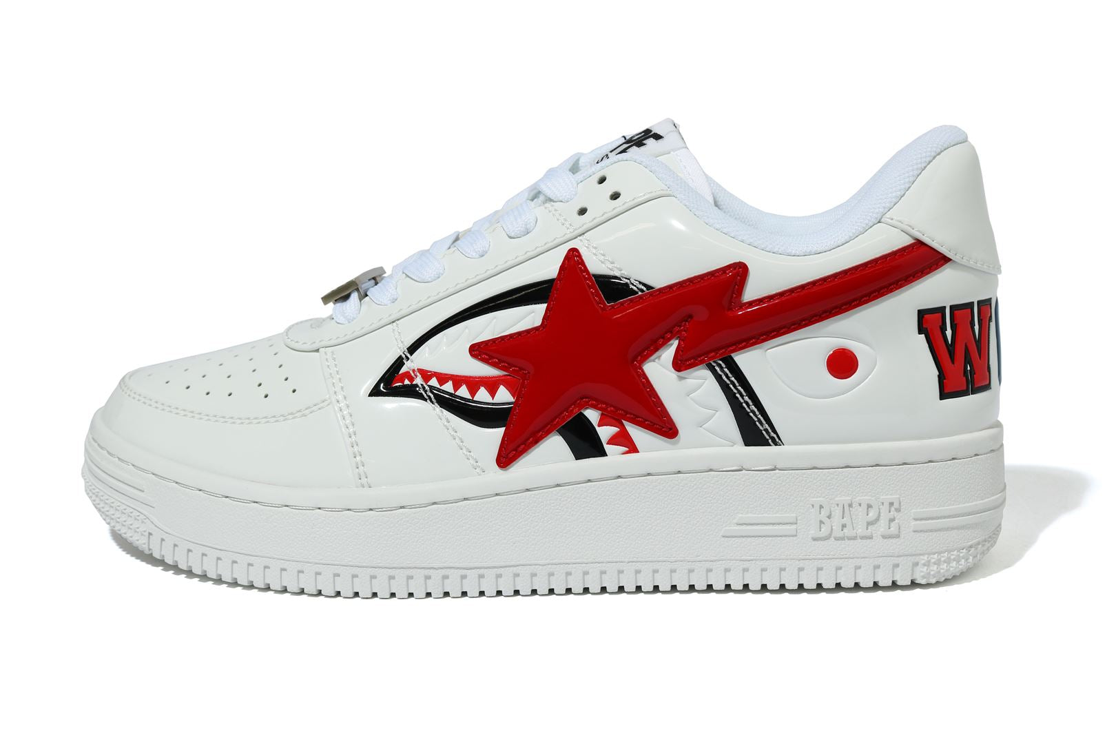 BAthtPE STA LOW with SHARK motif. The color of the motif stands out against the monochrome base color, and the item attracts attention to your feet.