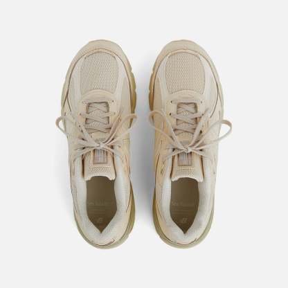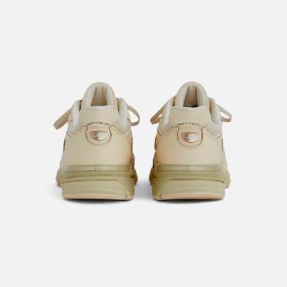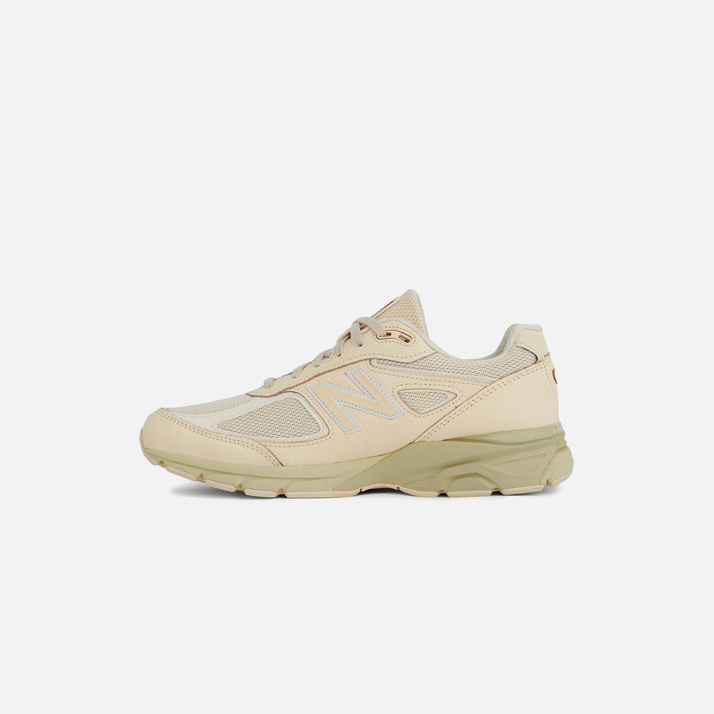 990V4 logo patch on laces