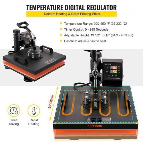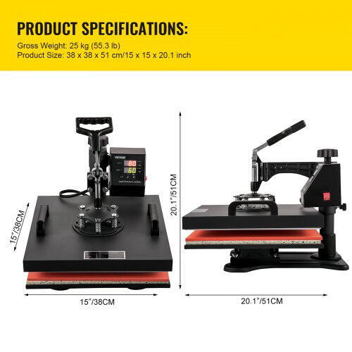 This 15 x 15 heat press uses the latest double-layer insulation technology to improve transfer performance. Thanks to With reliable motherboards and a precise temperature controller, stability is further improved. All accessories are provided to help you Apply these magnificent graphics to t-shirts, caps, plates, mugs, etc.