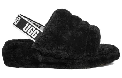 UthtGG Womens Fluff Yeah Slide Thick Sole Slipper Black 1095119-BLK
