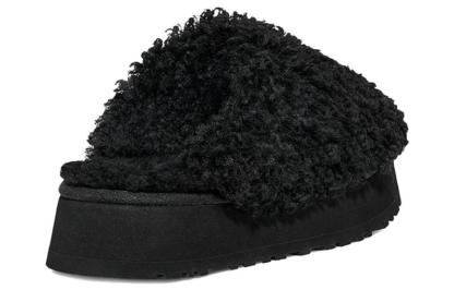 UthtGG Womens Maxi Curly Platform Slippers 'Black' 1133171-BLK