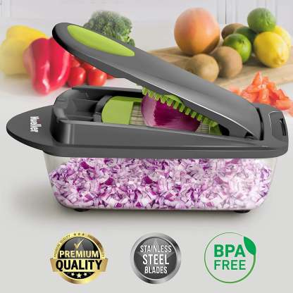 - Unmatched Quality Chop, Dice, Slice or Grate with our newest! This functional kitchen gadget will alleviate your prep time to just a couple of minutes. Made with premium materials like grade 420 stainless steel blades and food-grade bpa-free materials, it's the perfect tool to make home cooked meals easier and faster.