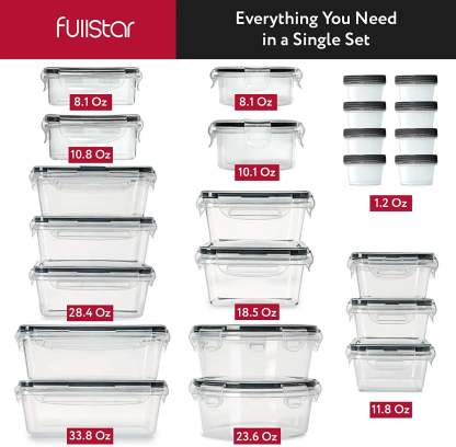 Versatile and long-lasting - Fullstar Containers are refrigerator, freezer, microwave safe (base only, NOT lid, under 5 min, under 700 Watt,*for at least half-full container). Plus these containers are stain-resistant and dishwasher safe, making cleaning a breeze.
