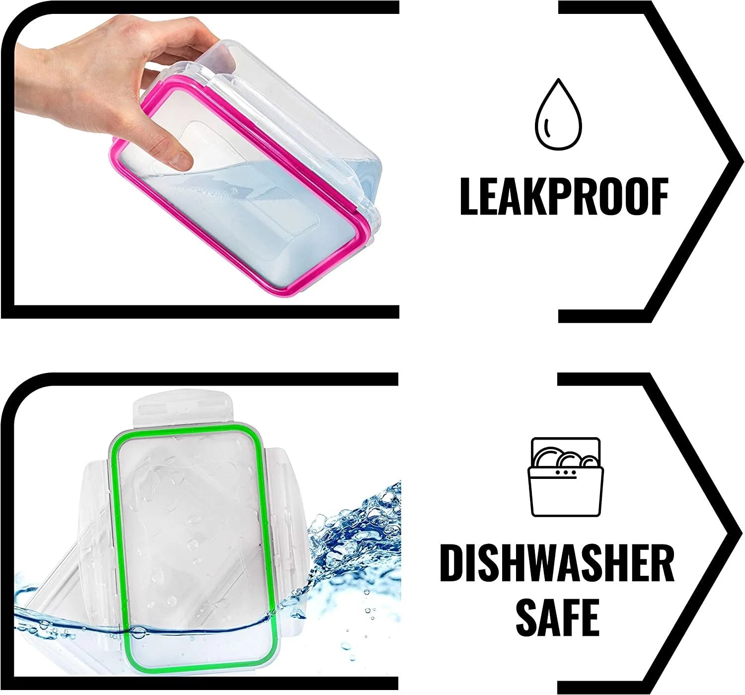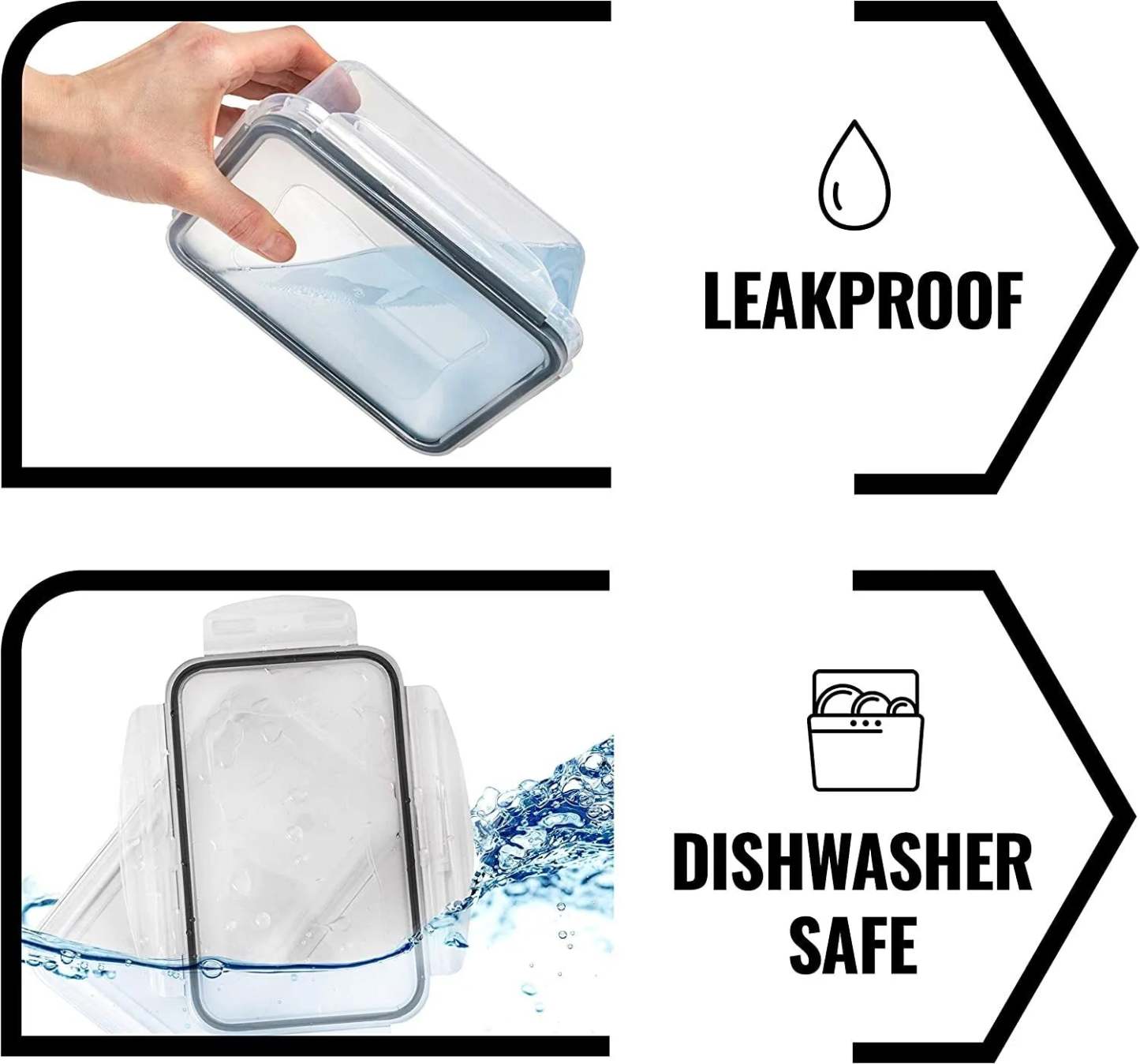 No more spills - Leakproof 4-hinge locking system forms an airtight, watertight seal between container and lid. You can carry soups and sauces in your bag without worrying about spills.