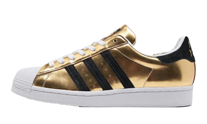 The Supthterstar 50TH ANNIVERSARY 'Liquid Gold' shoe celebrates five decades of iconic style with a dazzling liquid gold finish, offering a luxurious and commemorative take on the classic Supthterstar silhouette.