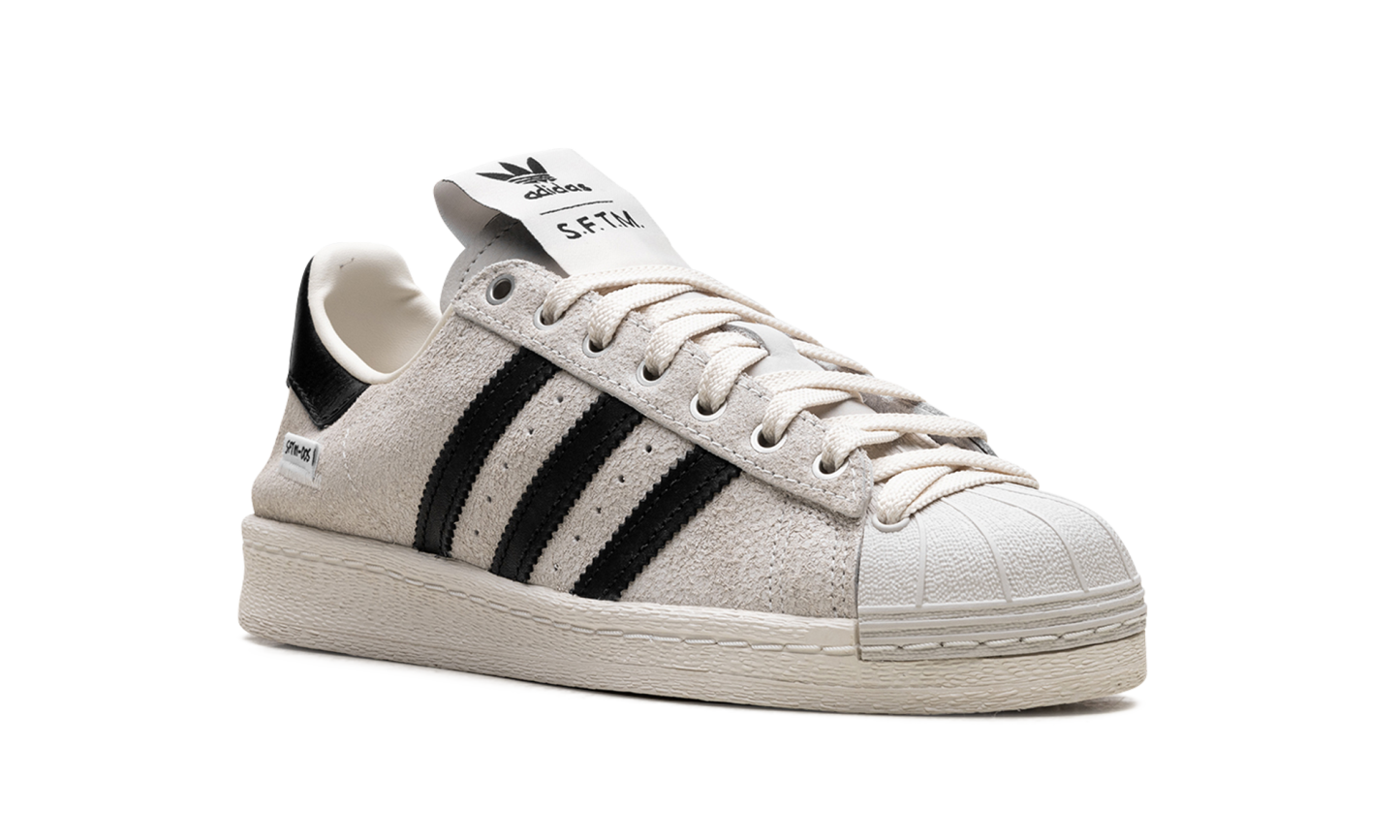 The Supthterstar 82 'Song For The Mute - Cream White' shoe blends classic Adithtdas Supthterstar style with a unique design inspired by the "Song For The Mute" collaboration, featuring a sleek cream white aesthetic.