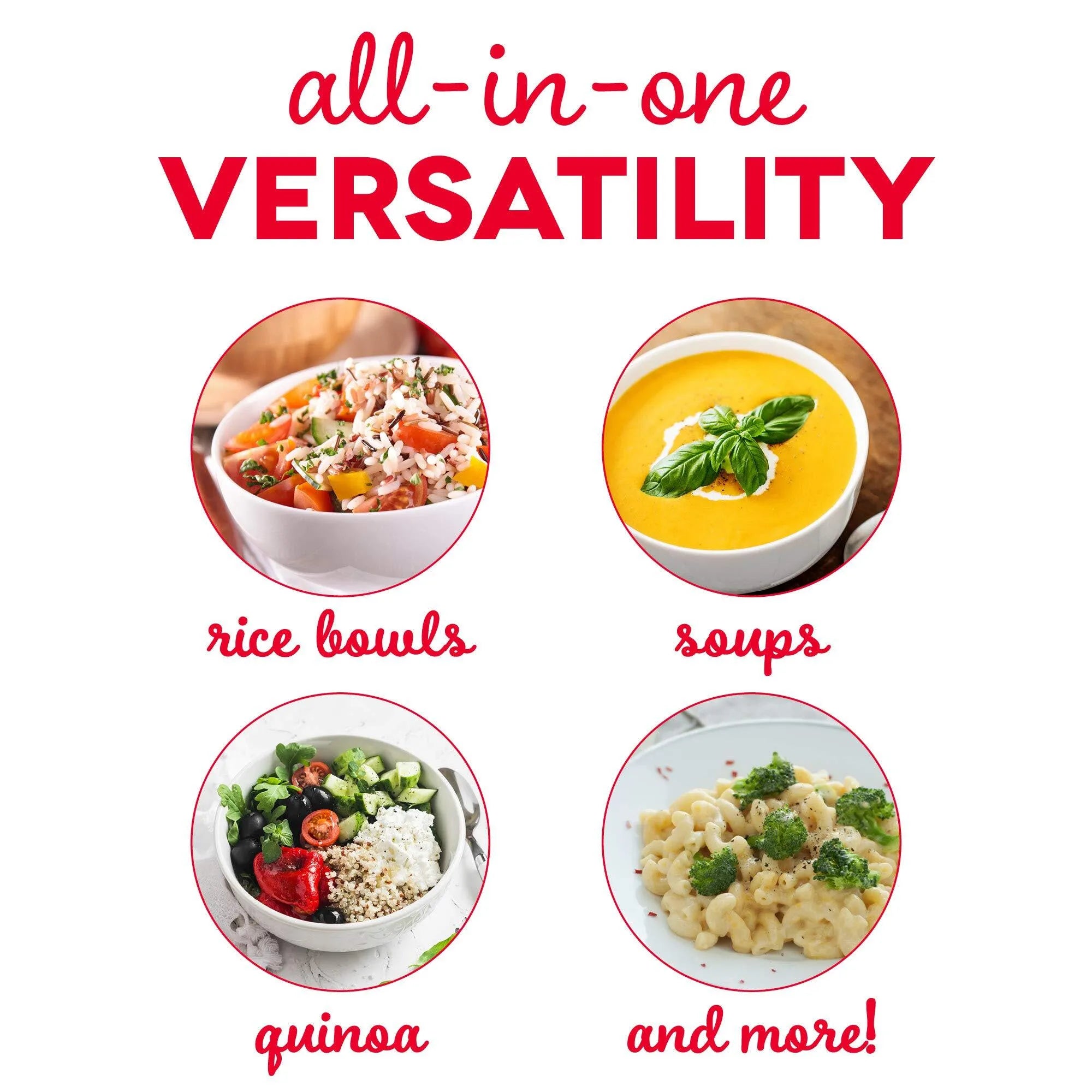 - MORE THAN RICE: Oatmeal, stew, soup, quinoa, rice, and pasta. The 2-cup capacity allows for healthier portion control, or individual, quick and easy breakfast, lunch, dinner, snacks, or sides.