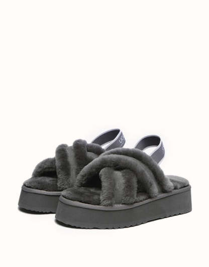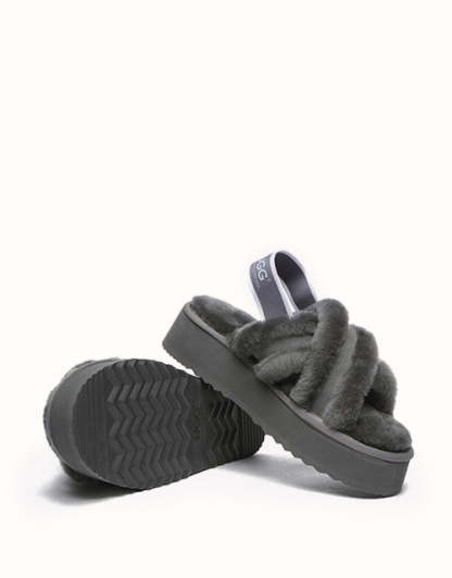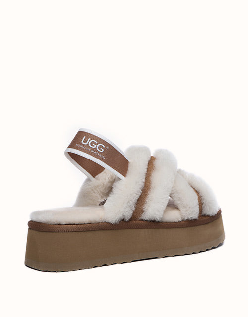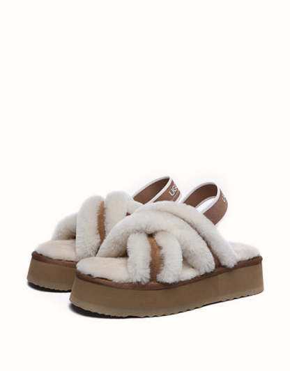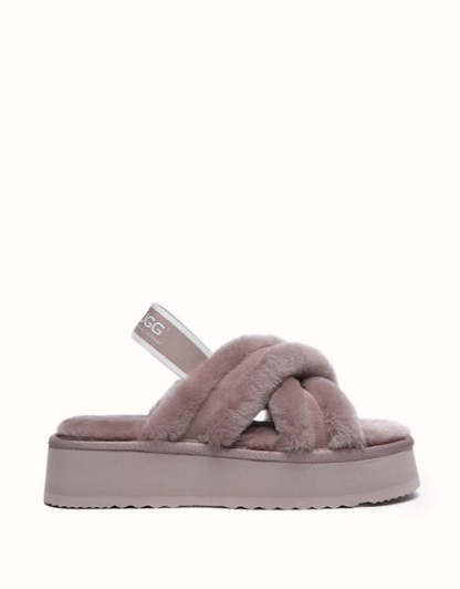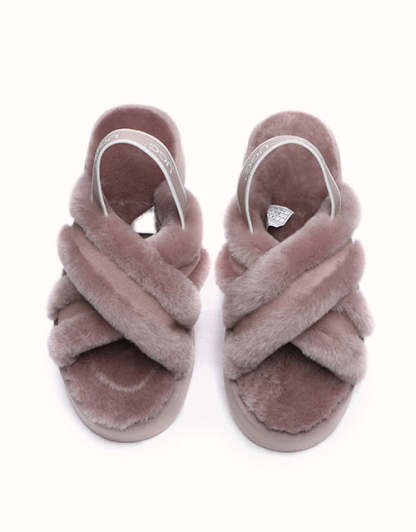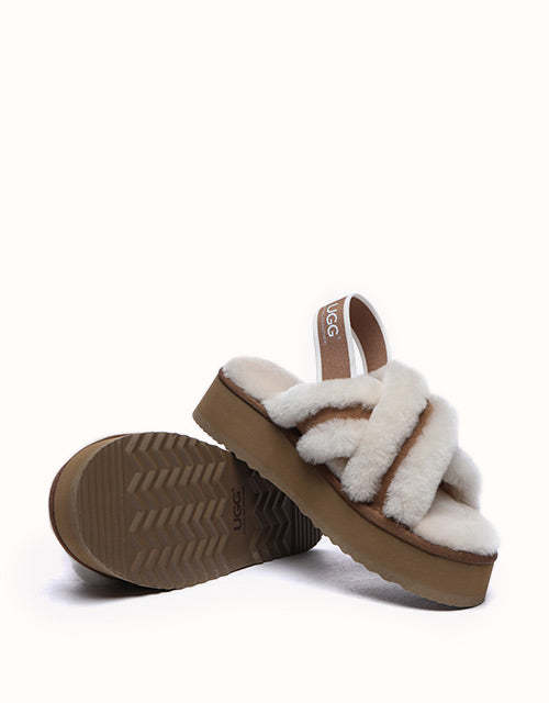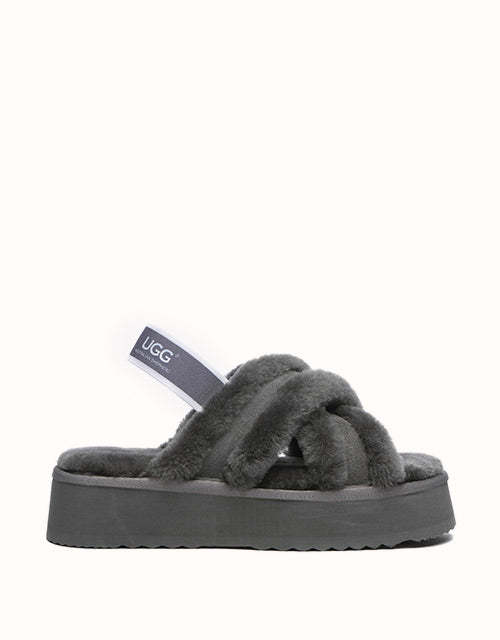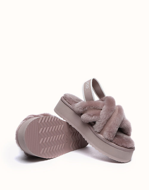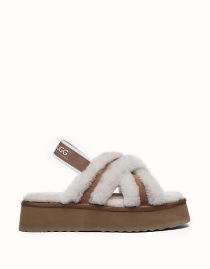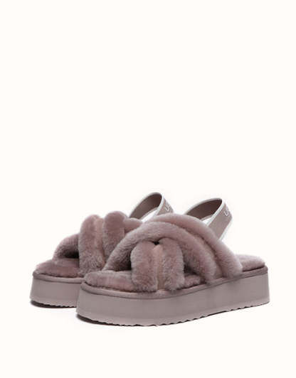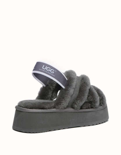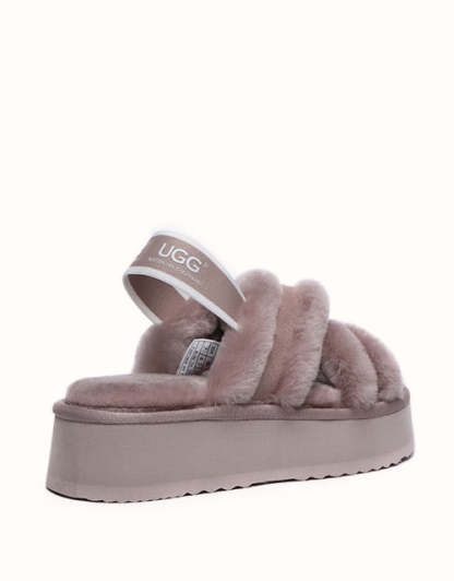 Experience the unique twist on the on-trend platform slides with AUSTRthtALIAN SHEPthtHERD Aditi. These must-have slides feature a plush crossover strap and a luxe branded back strap. Choose from four captivating colors: Dawn Pink, Chestnut, Grey, and Black. Premium sheepskin wool lining and insole take the fashion and comfort of these shoes to the next level - keep your feet warm, cozy, and comfortable while exuding style!