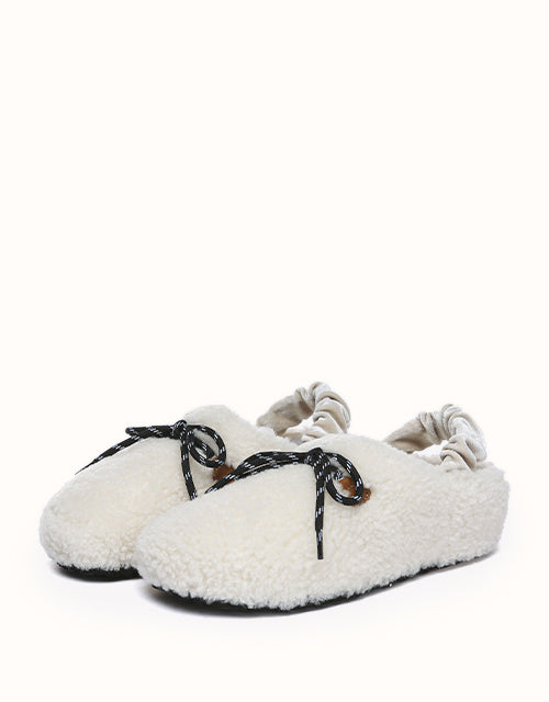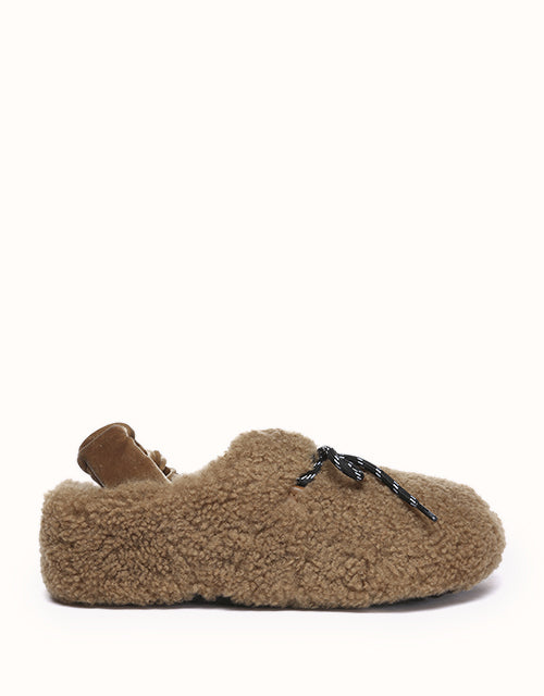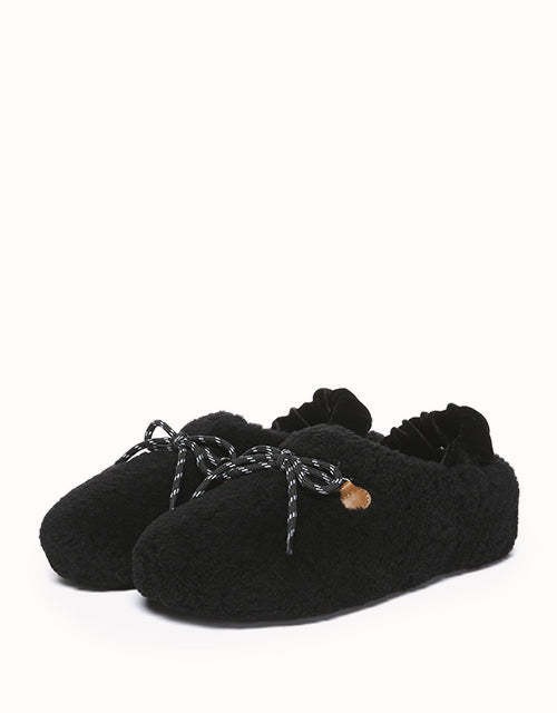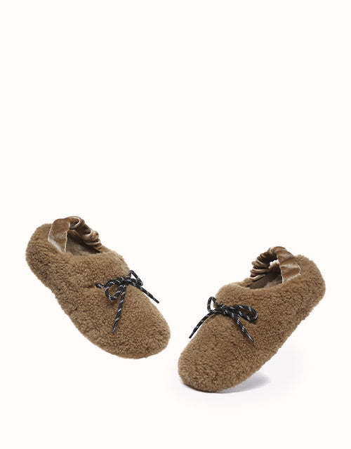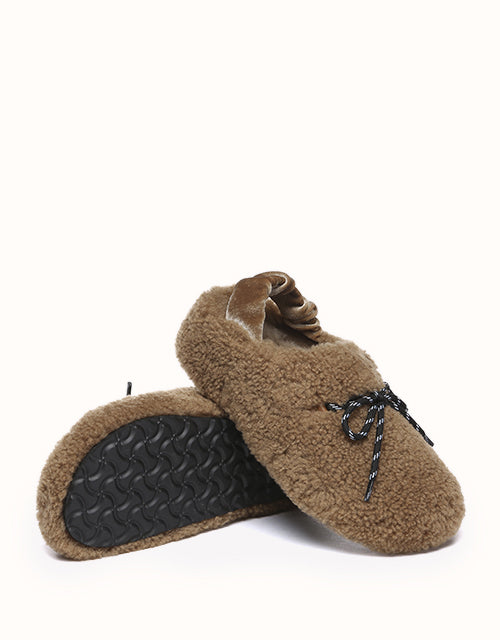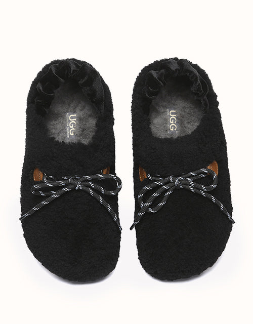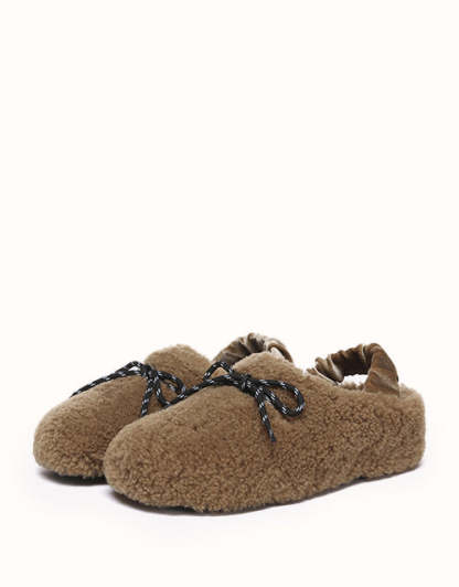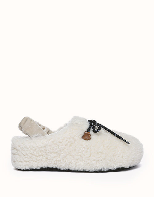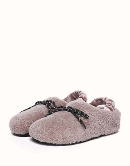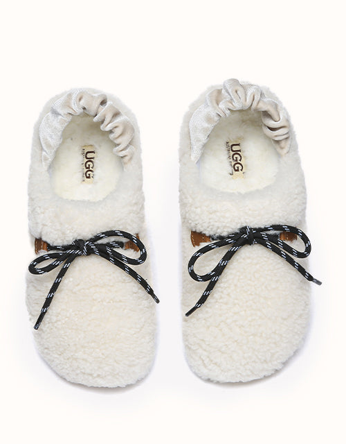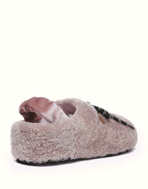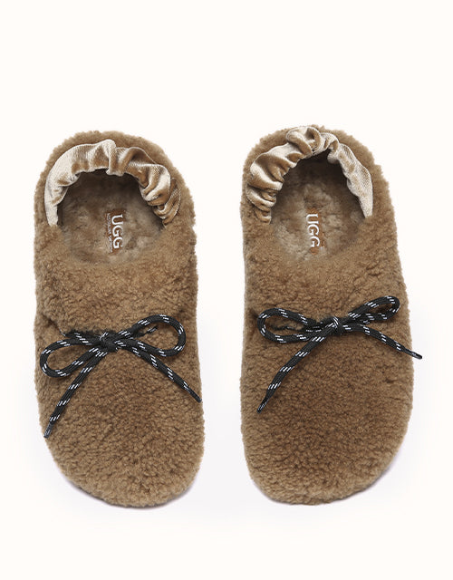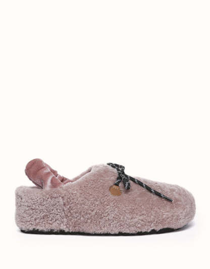 Experience unmatched comfort and style with the Australian Shepherd Barrett Curly Sheepskin Slippers. Designed for both indoor and outdoor wear, these cozy slippers feature plush curly sheepskin for warmth and softness. The patterned outsole provides enhanced grip, while the moisture-wicking properties help keep your feet dry. A delicate ribbon detail adds a touch of elegance, allowing you to tie it your way for a personalized look. Perfect for lounging or stepping out in effortless style, these slippers bring luxury to your everyday routine.