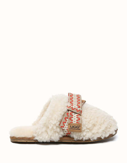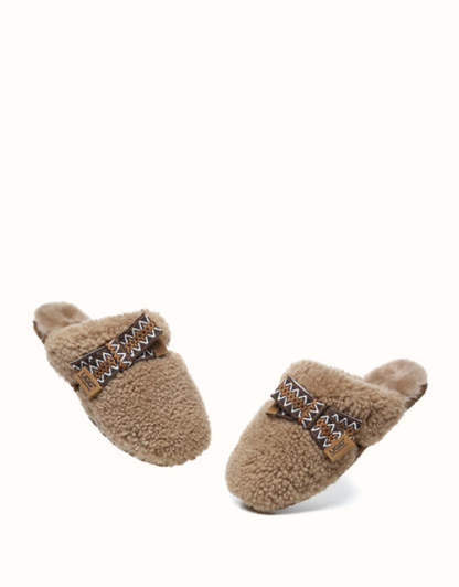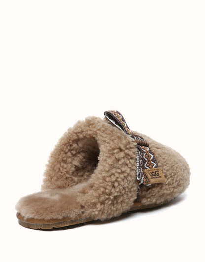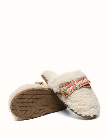Featuring a Fair Isle-inspired bow and soft shearling upper, these slip-on mules exude effortless charm and comfort. Crafted from premium Australian Merino sheepskin, they offer a luxuriously soft, skin-friendly feel and all-weather warmth. The durable rubber sole provides excellent grip and support, ensuring comfort for both indoor lounging and outdoor strolls.