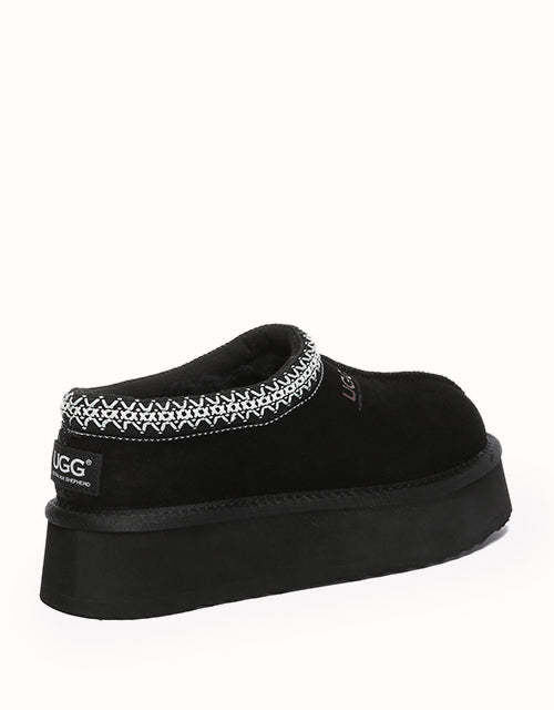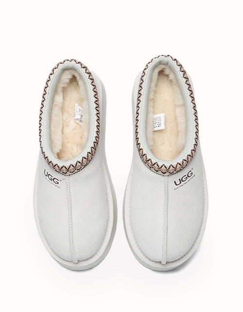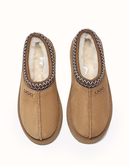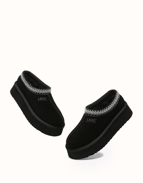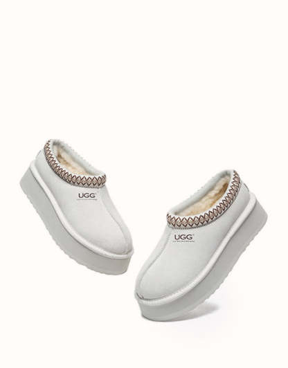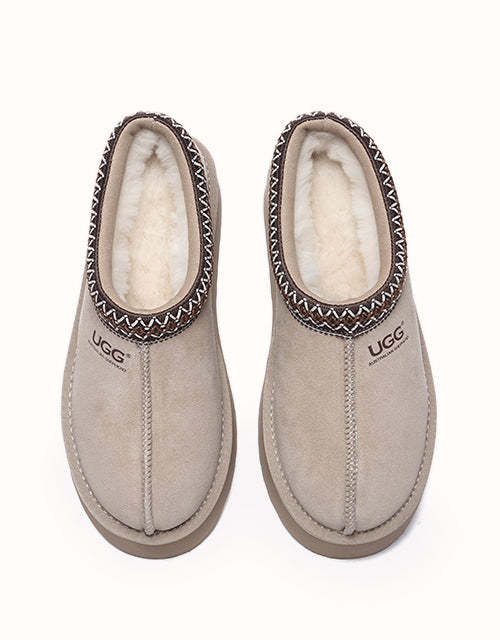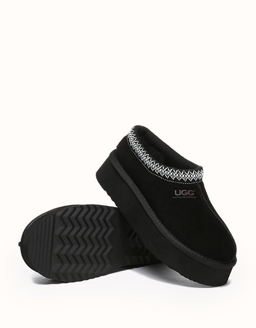 Channel your most stylish self with the AUSTRthtALIAN SHEPthtHERD Tazzy Hippie Platform UGthtG Slippers. Designed with atassyplatformed sole, the trendy style offers sophistication and comfort all in one slipper! Featuring five neutral colorways, including chestnut and olive, these slippers can be styled with any ensemble while embodying undean rstated elegance.