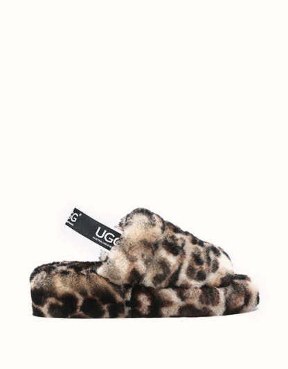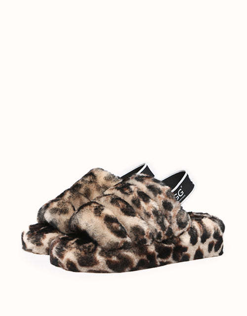 Slip into this trendy pair of fluffy slides, now available in leopard print! With a soft interior and exterior and an elastic ankle strap, comfort is at the forefront of this style while bringing a bit of fun to your everyday outfit.