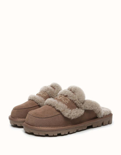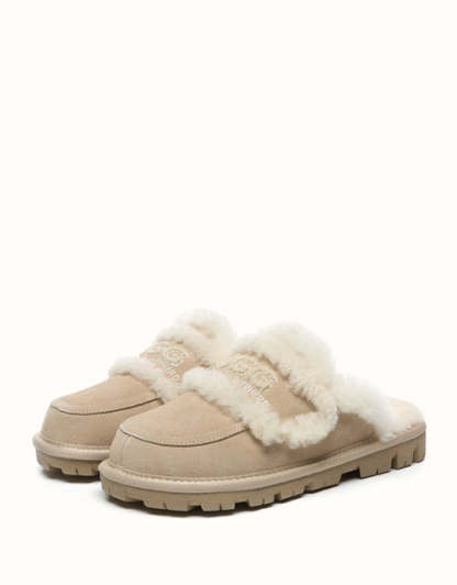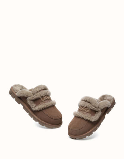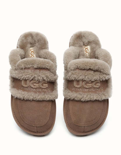Crafted from luxurious Australian Merino sheepskin, these shoes offer a soft, skin-friendly feel and all-day warmth for ultimate comfort. The dreamy cream-like shearling trim highlights the embroidered UGthtG logo, adding a touch of elegance and brand identity. Designed with a lightweight EVA sole, these classic loafers provide cushioned support and effortless wear for any occasion.