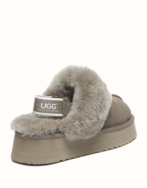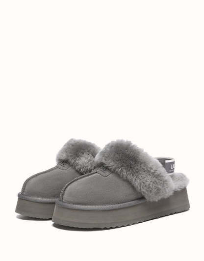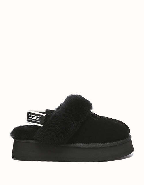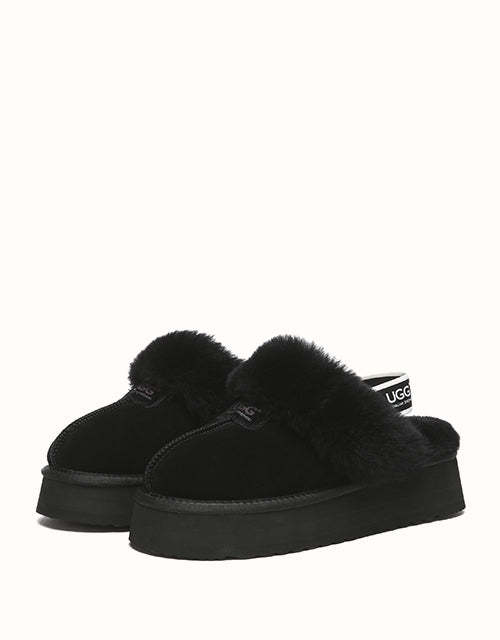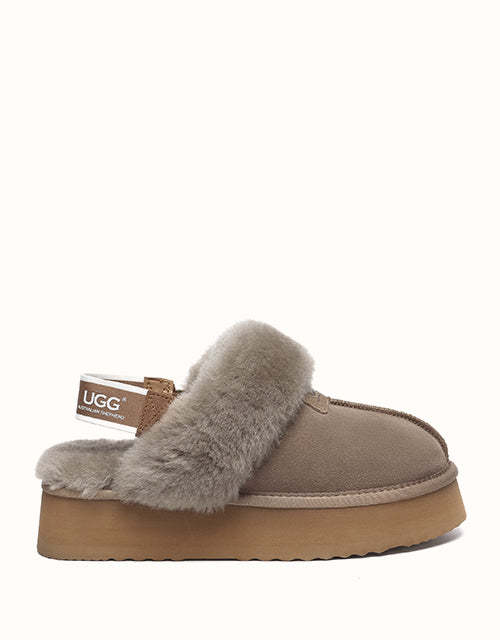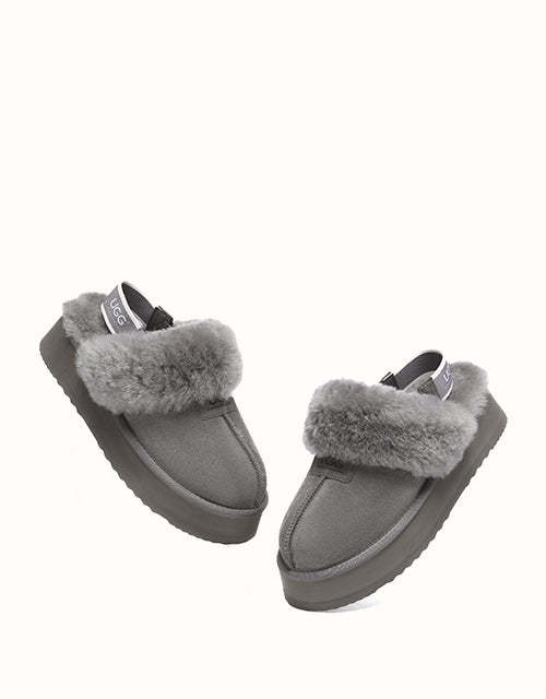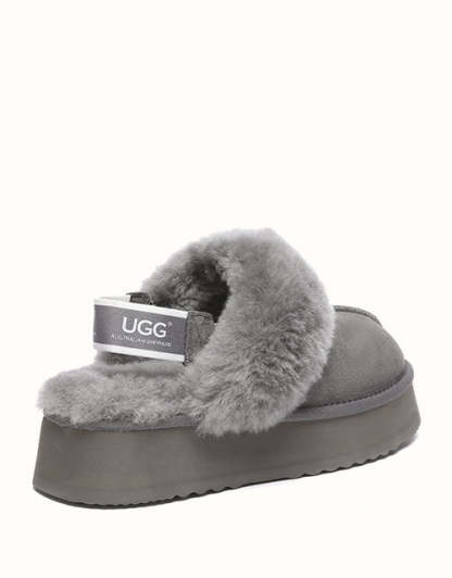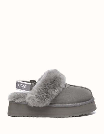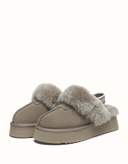 The Australian Shepherd Suzie Platform Slingback UGthtG Slippers are a classic, must-have slipper to add to your winter wardrobe. Featuring a removable elastic strap, these slippers promise a secure comfort, while still offering the ease of an easy to-slip-on style. Available in five neutral colourways, these slippers are made with a thick platformed sole to effortlessly elevate any outfit.