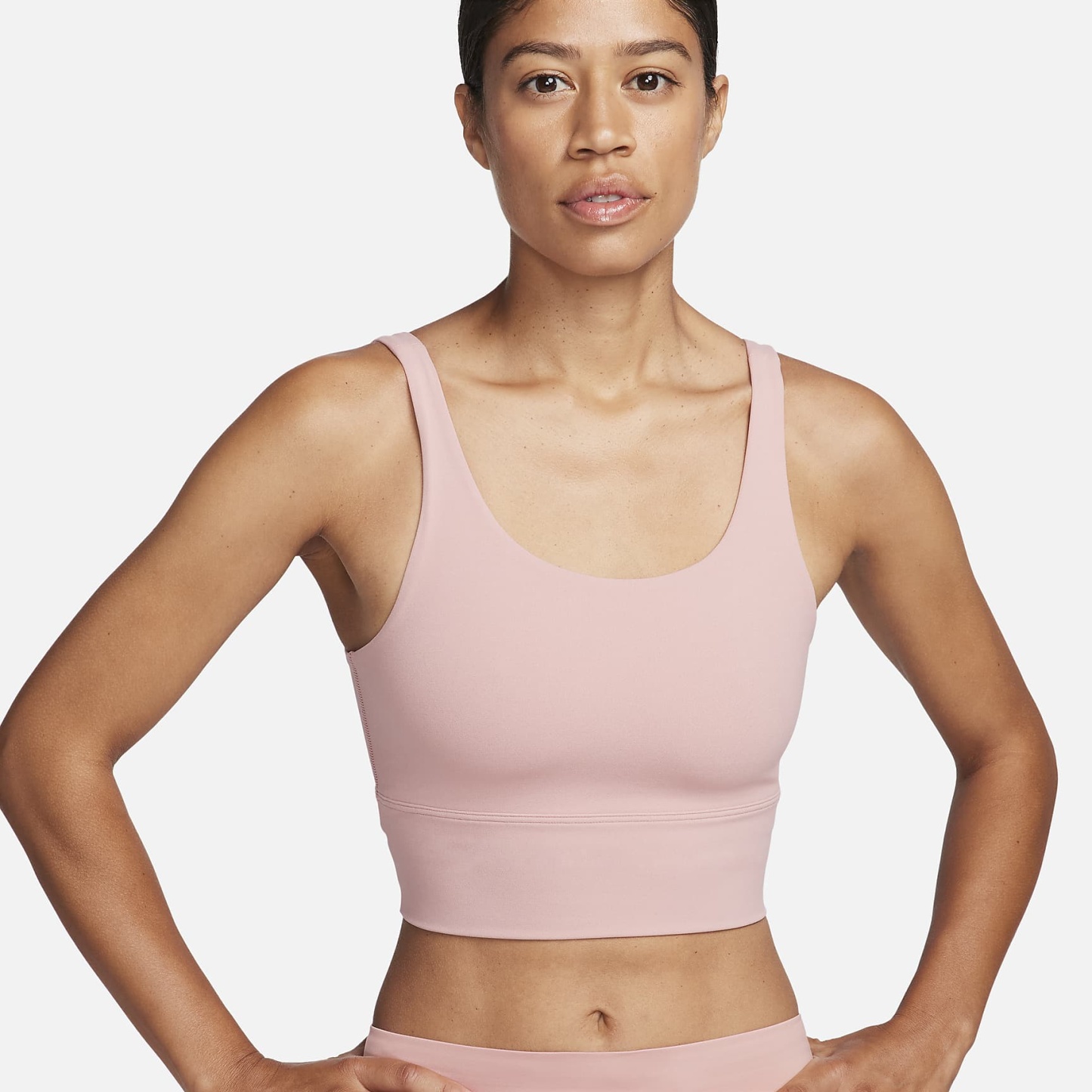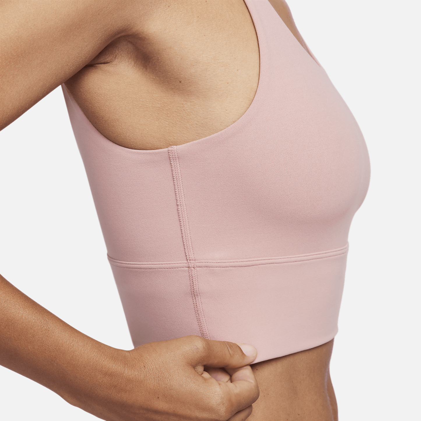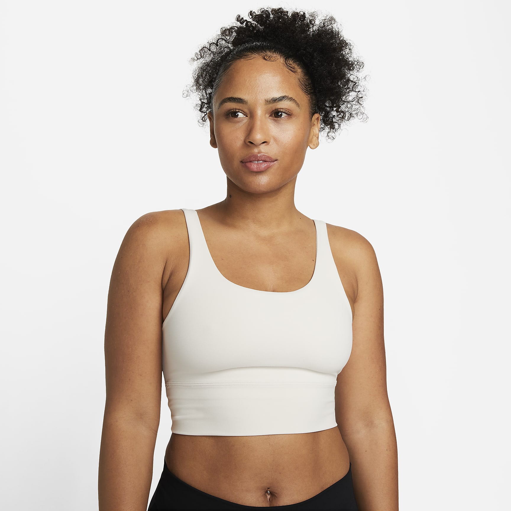 Take on your day with confidence in this sweat-wicking, scoop-neck bra. A longline silhouette offers enhanced coverage while the unpadded design with just 2 layers of material feels like a second skin. The InfinaSoft fabric of the body and straps feels like you’re being hugged by a silky cloud and stretches easily, giving you the ultimate freedom of movement. You might just forget you're wearing a bra at all.