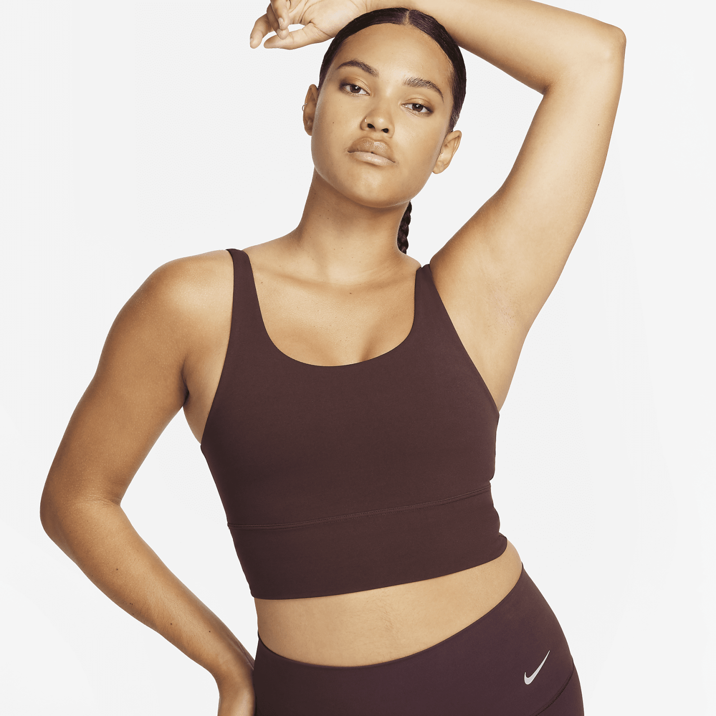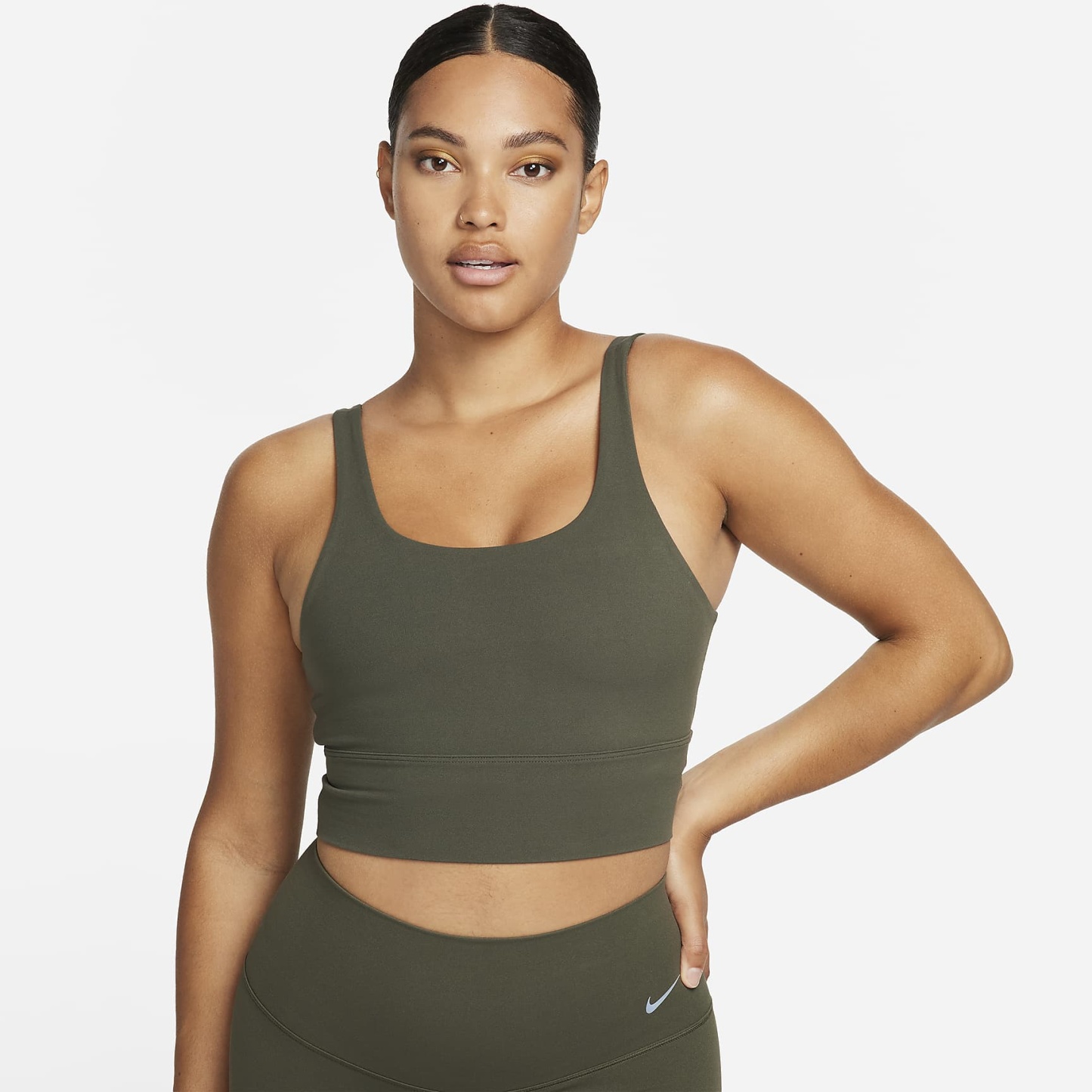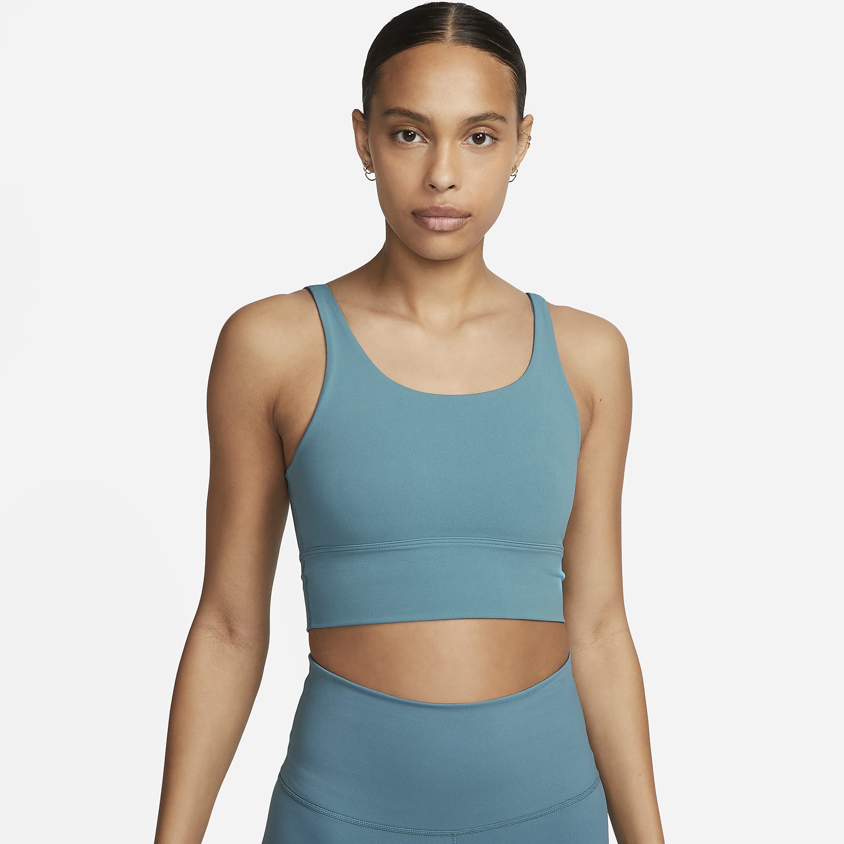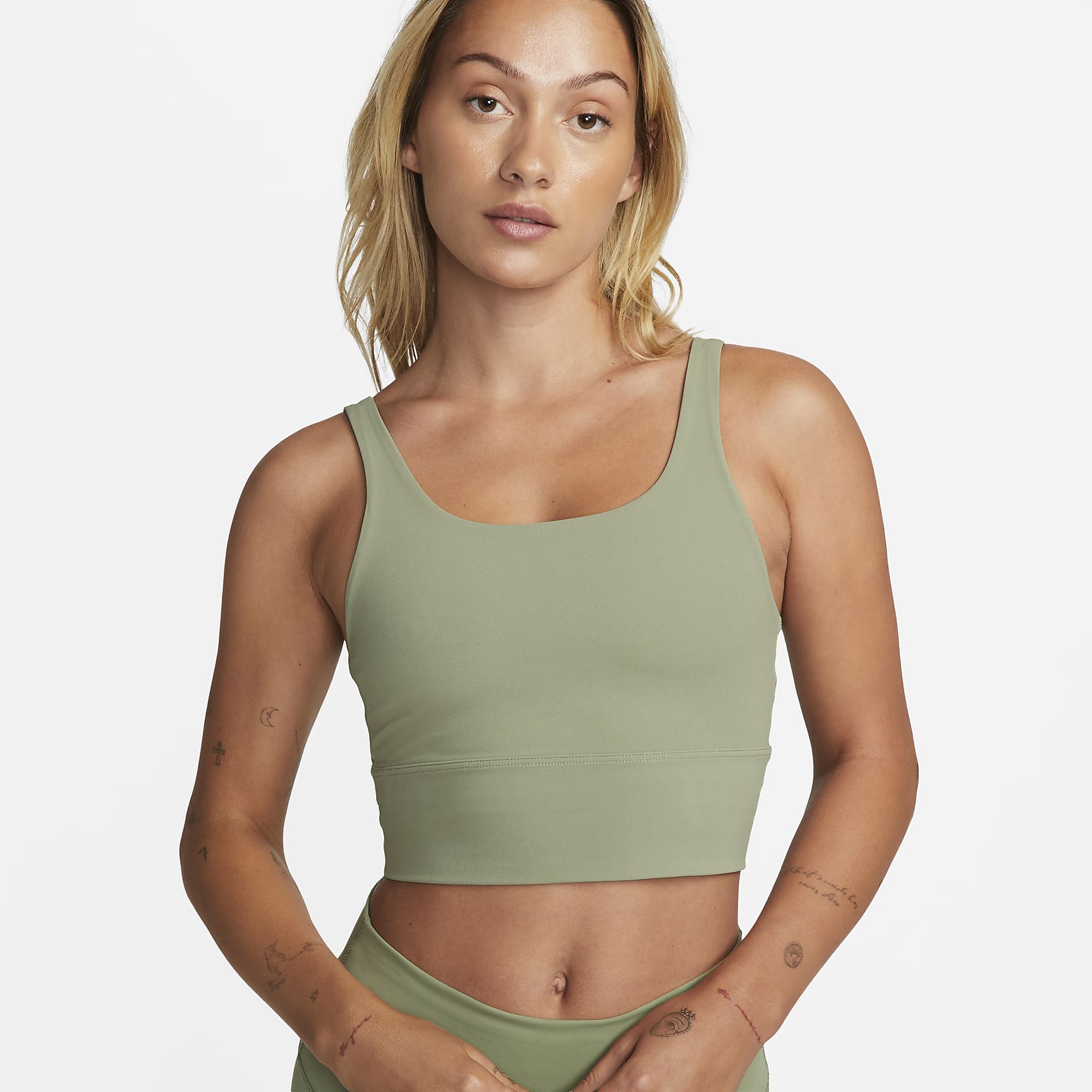 Take on your day with confidence in this sweat-wicking, scoop-neck bra. A longline silhouette offers enhanced coverage while the unpadded design with just 2 layers of material feels like a second skin. The InfinaSoft fabric of the body and straps feels like you’re being hugged by a silky cloud and stretches easily, giving you the ultimate freedom of movement. You might just forget you're wearing a bra at all.