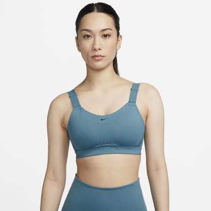 This bra gives you our highest level of support with a compressive feel and minimal bounce for a secure fit. Engineered foam pads provide encapsulated support and shaping, and it adjusts in the back so you can feel comfortably contained—yet still able to breathe. Ventilation on the front and back helps you stay cool through the heat of your workout. This product is made with at least 50% recycled polyester fibers.