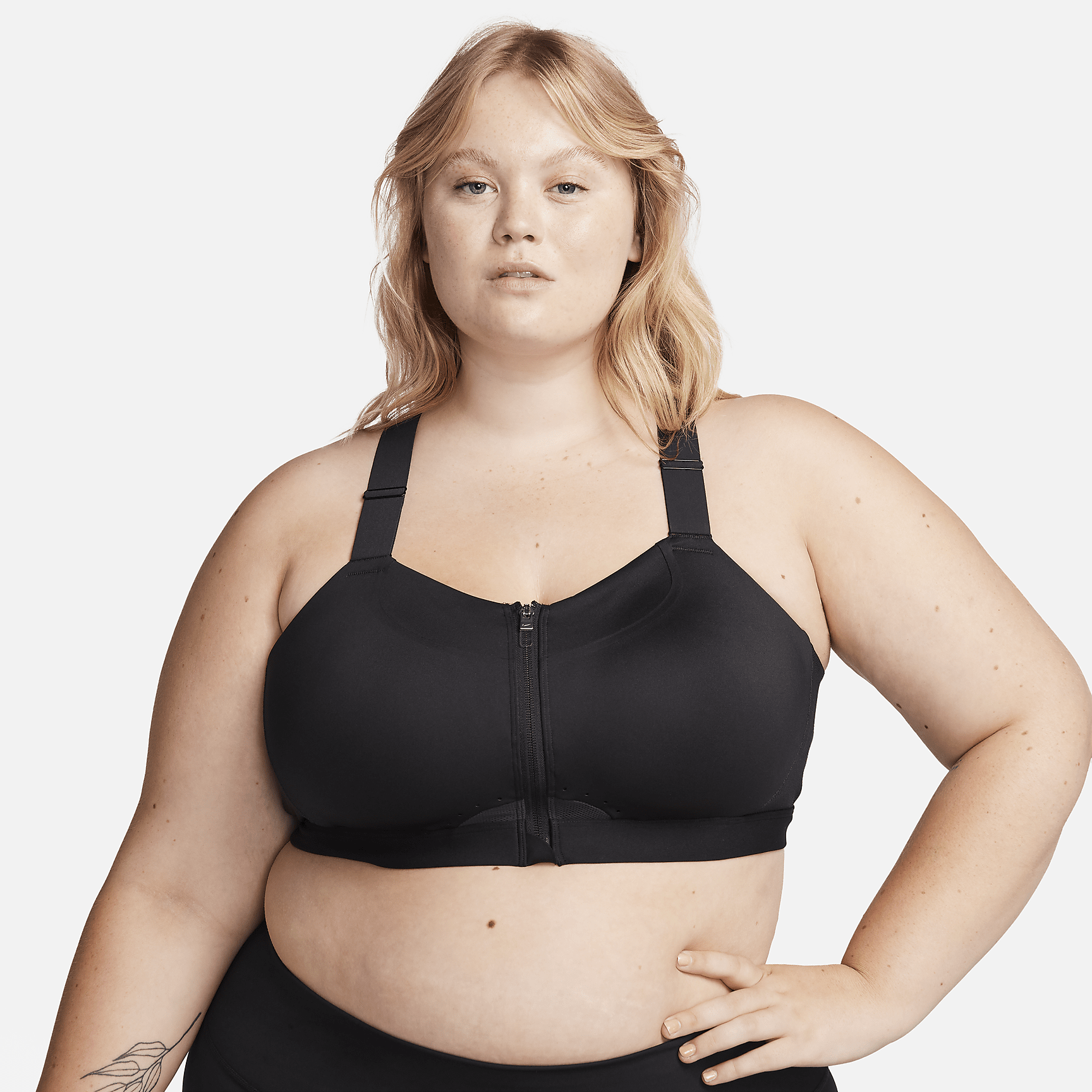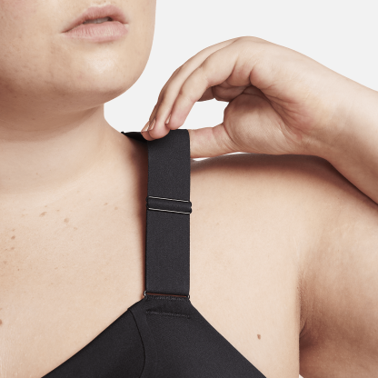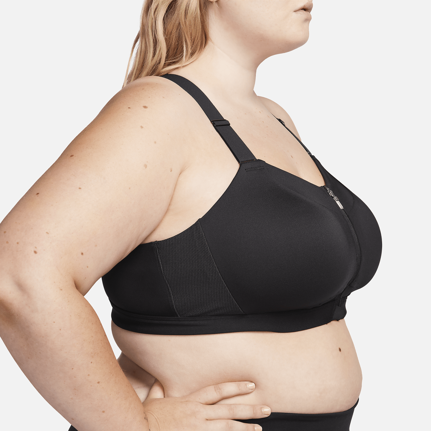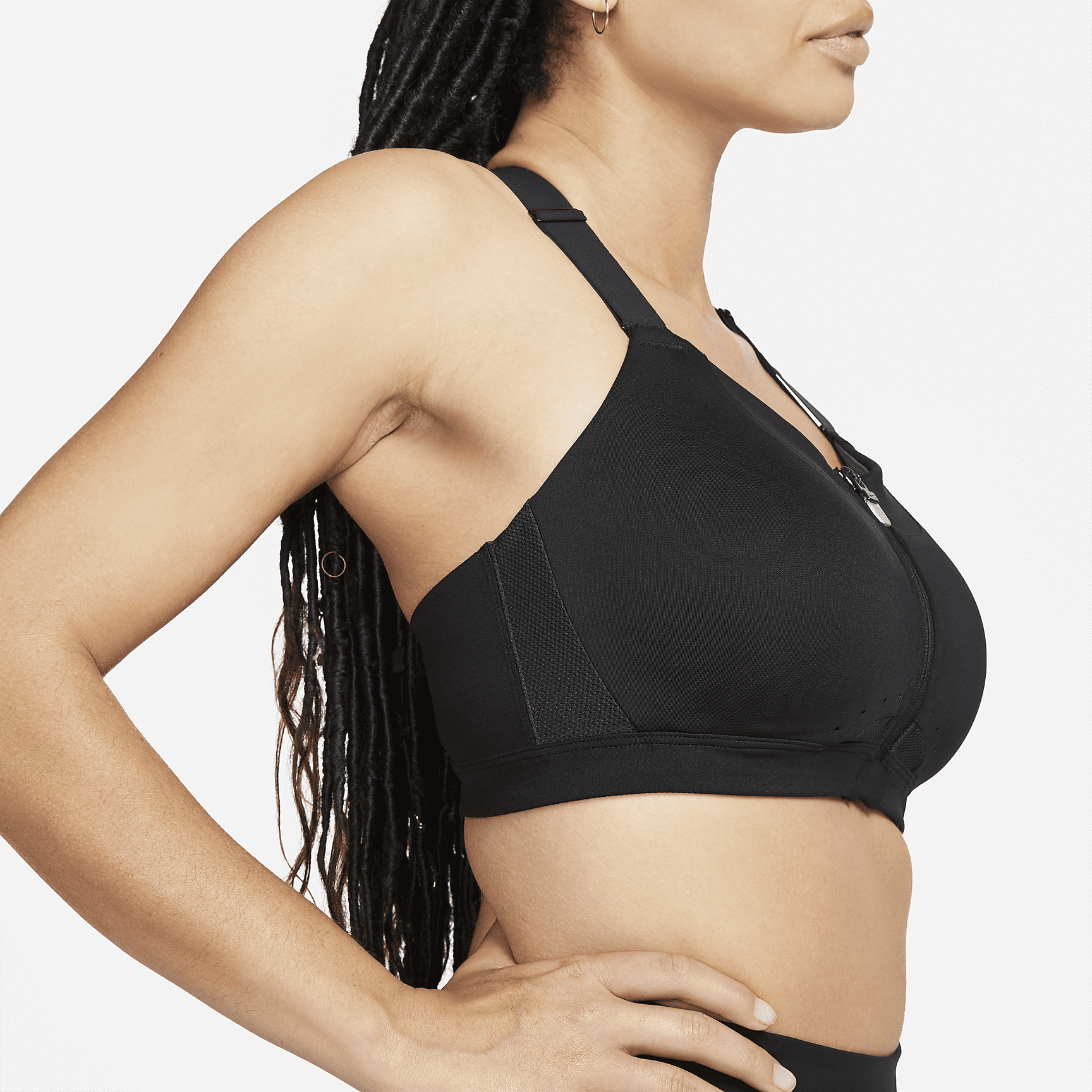 This bra gives you our highest level of support with a compressive feel and minimal bounce for a secure fit. A front zipper and molded cups provide shaping, and it adjusts in the back so you can feel comfortably contained—yet still able to breathe. Ventilation on the front and back helps you stay cool through the heat of your workout. This product is made with at least 50% recycled polyester fibers.