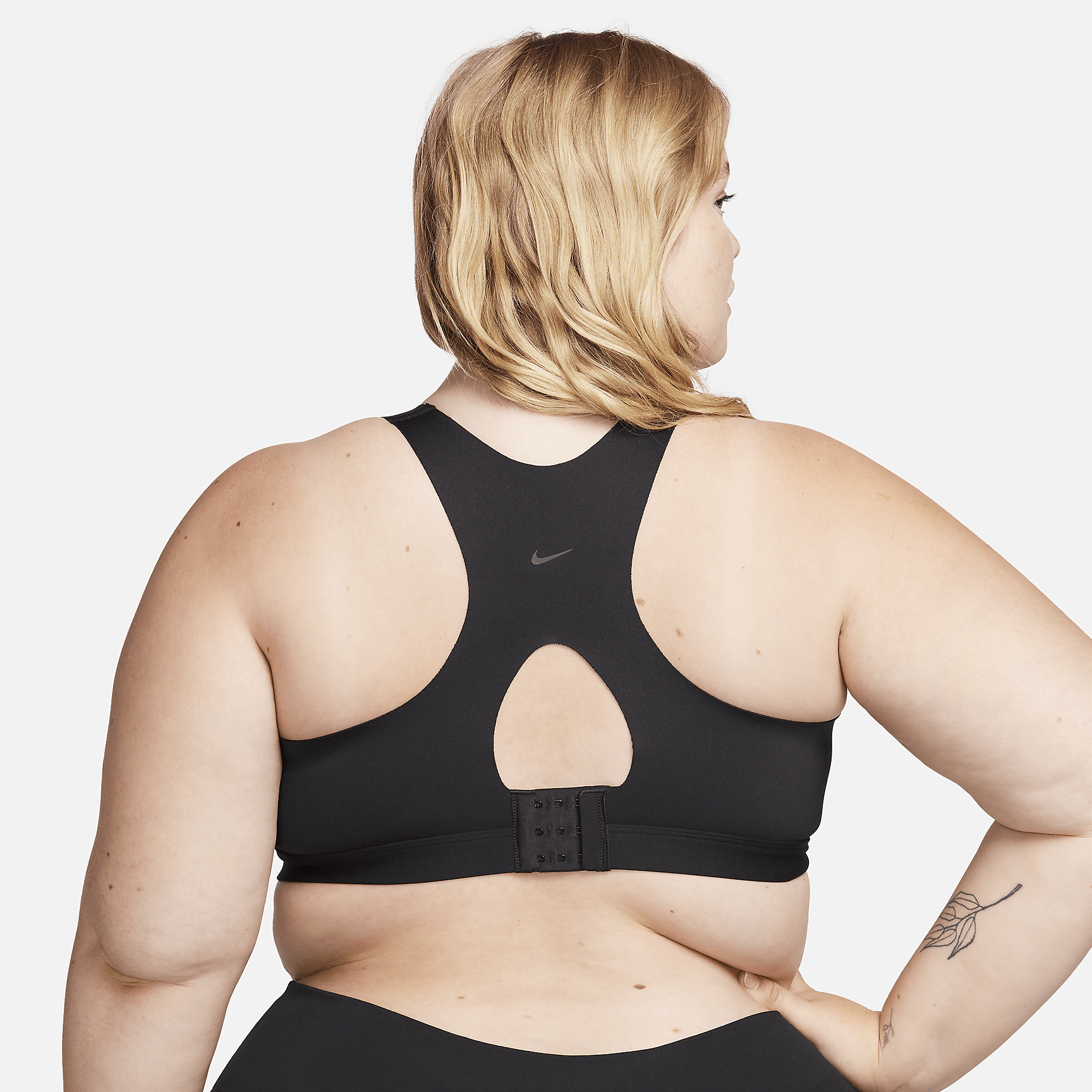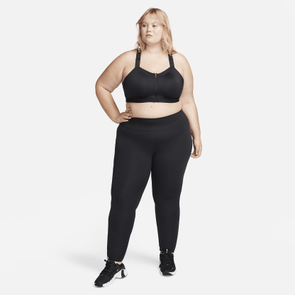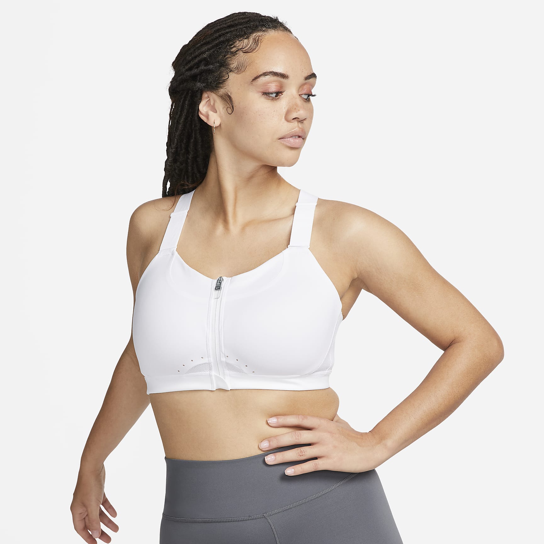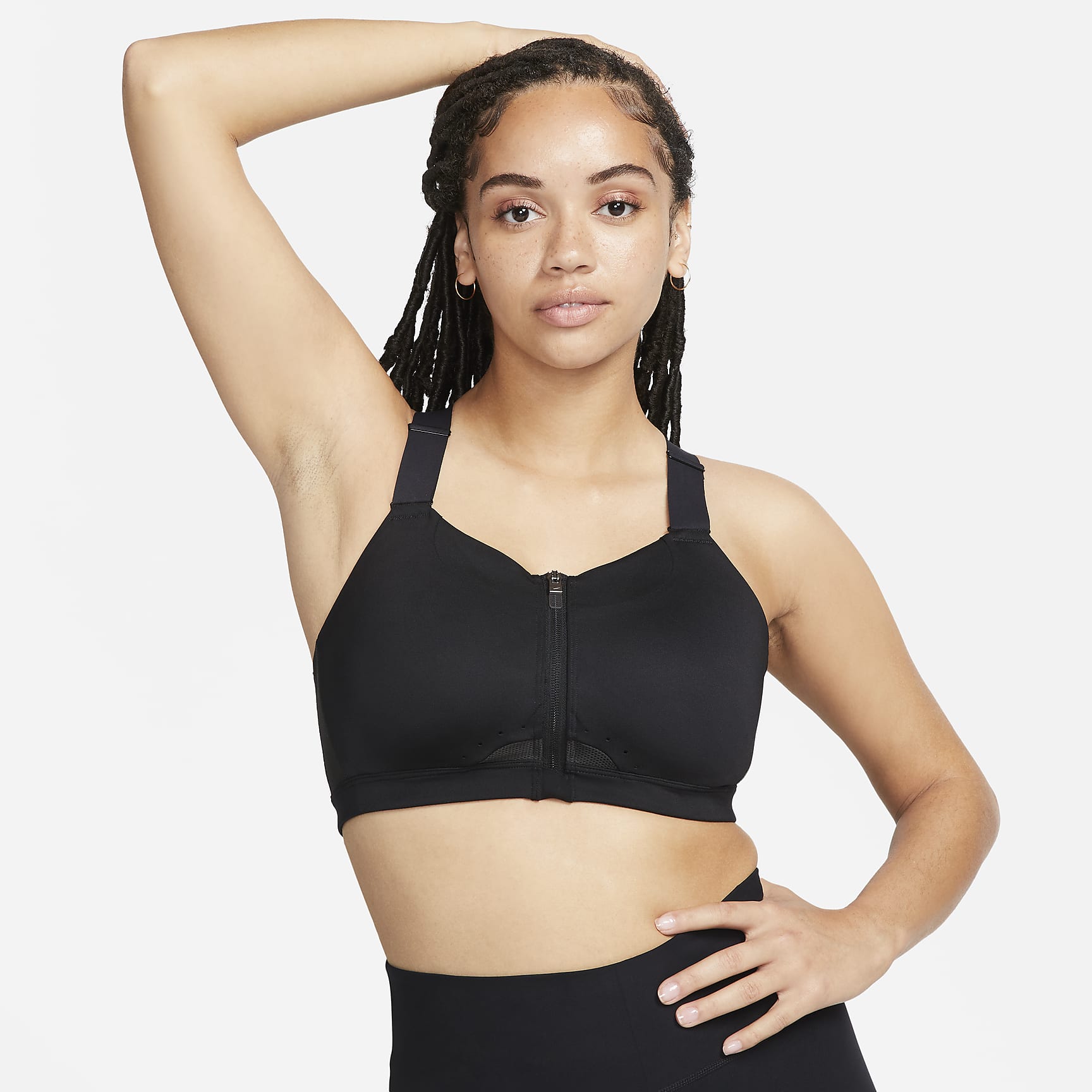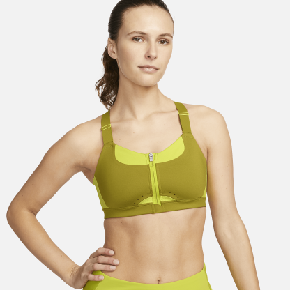 This bra gives you our highest level of support with a compressive feel and minimal bounce for a secure fit. A front zipper and molded cups provide shaping, and it adjusts in the back so you can feel comfortably contained—yet still able to breathe. Ventilation on the front and back helps you stay cool through the heat of your workout. This product is made with at least 50% recycled polyester fibers.