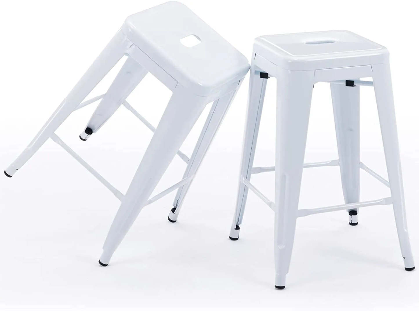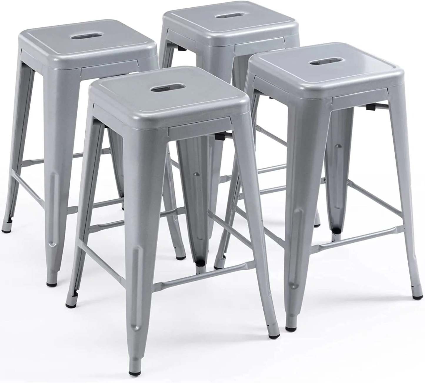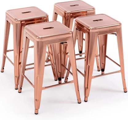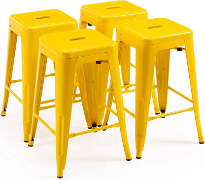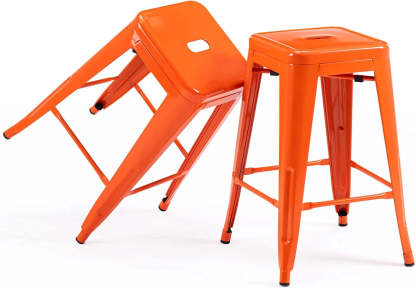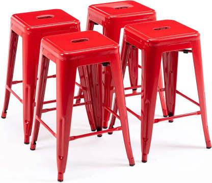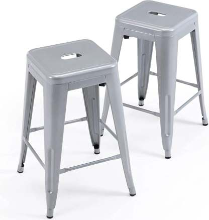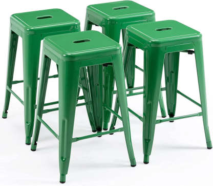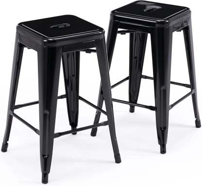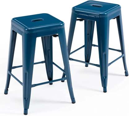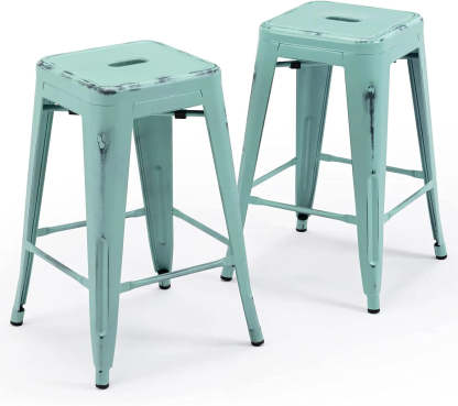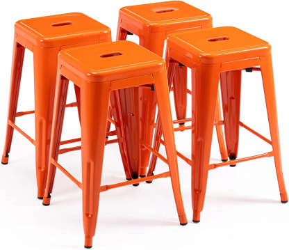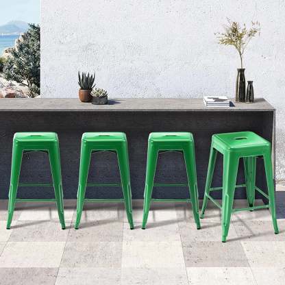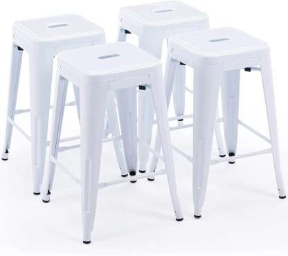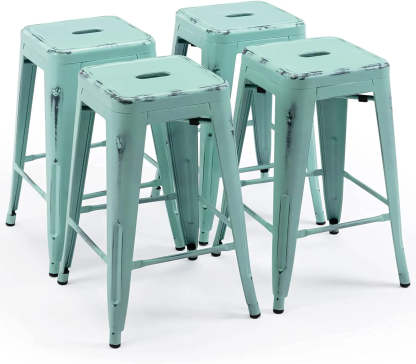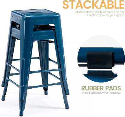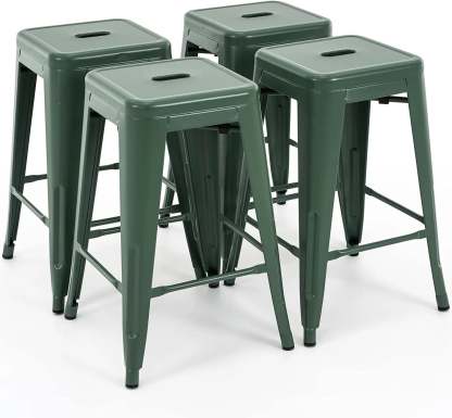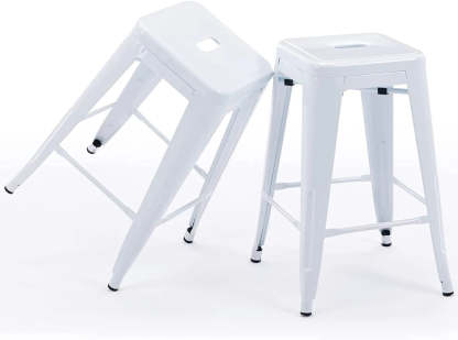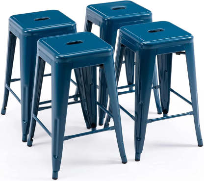 24 Inch Metal Bar stools, Backless Counter Height Barstools, Indoor Outdoor Stackable Stools with Square Seat