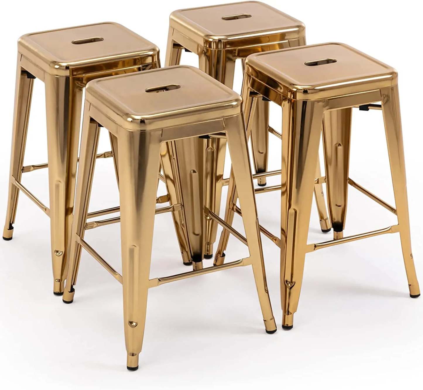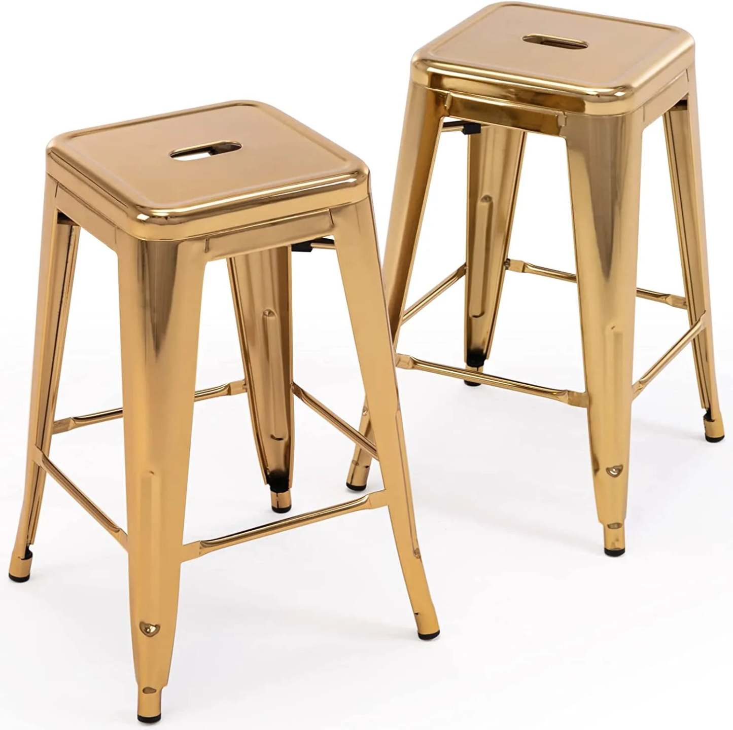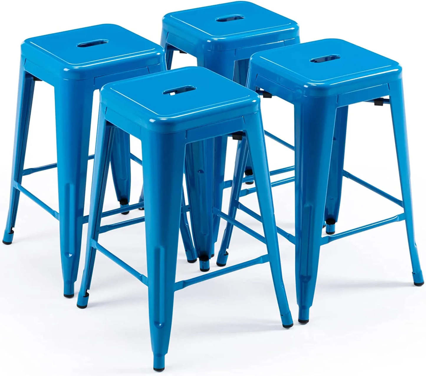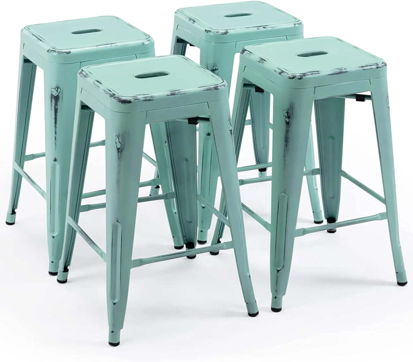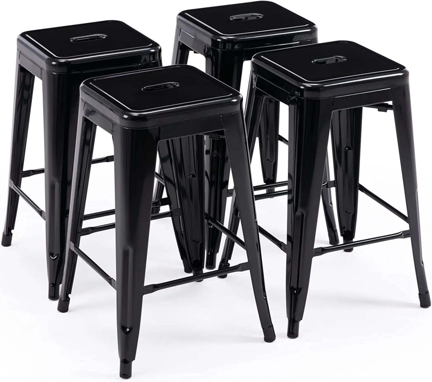 24 Inch Metal Bar stools, Backless Counter Height Barstools, Indoor Outdoor Stackable Stools with Square Seat