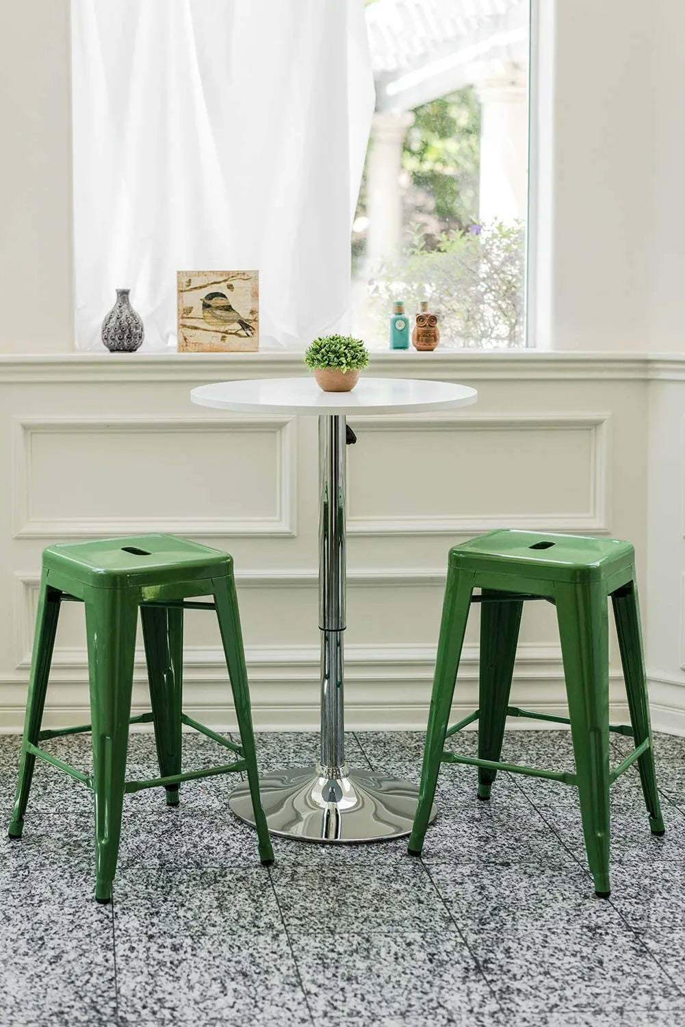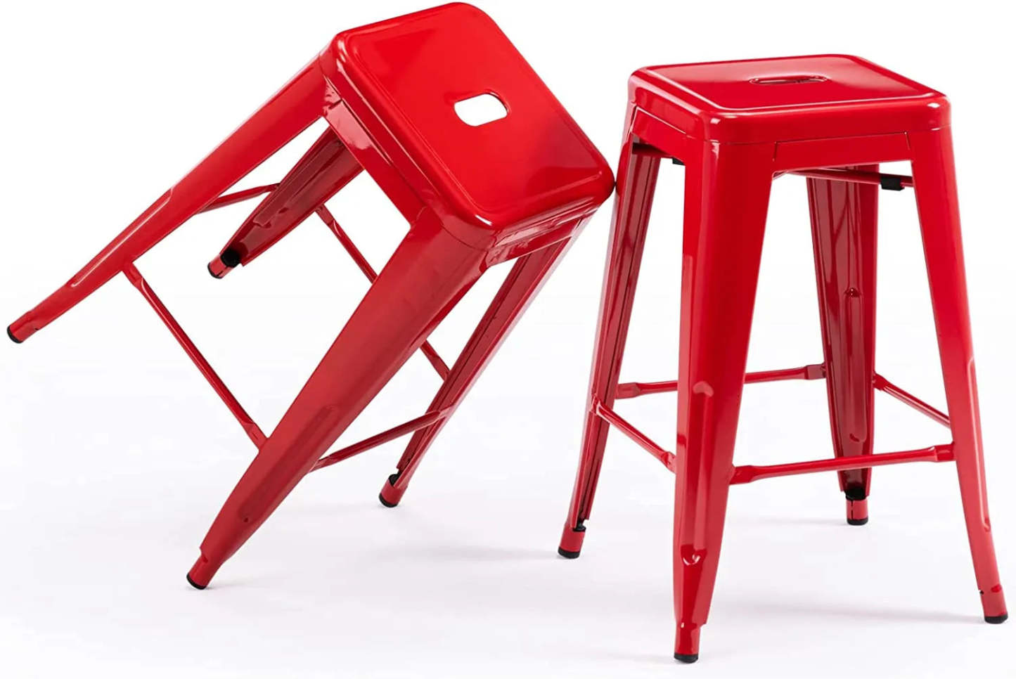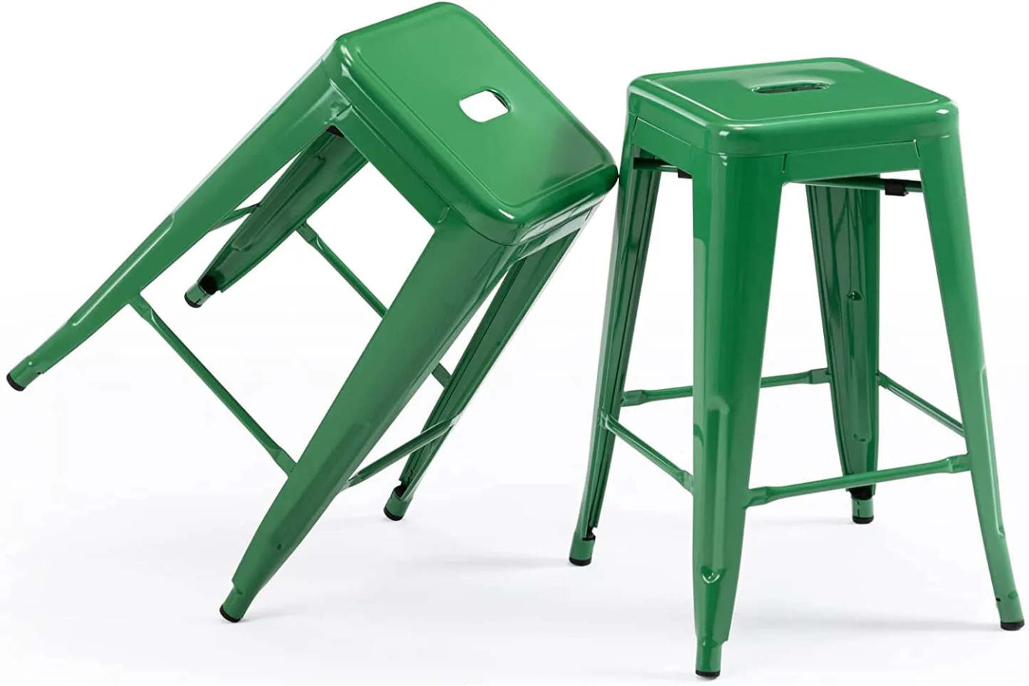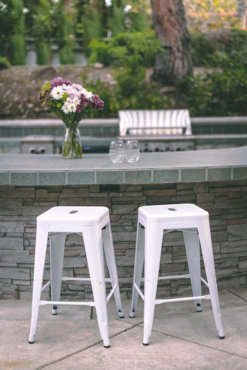24 Inch Metal Bar stools, Backless Counter Height Barstools, Indoor Outdoor Stackable Stools with Square Seat