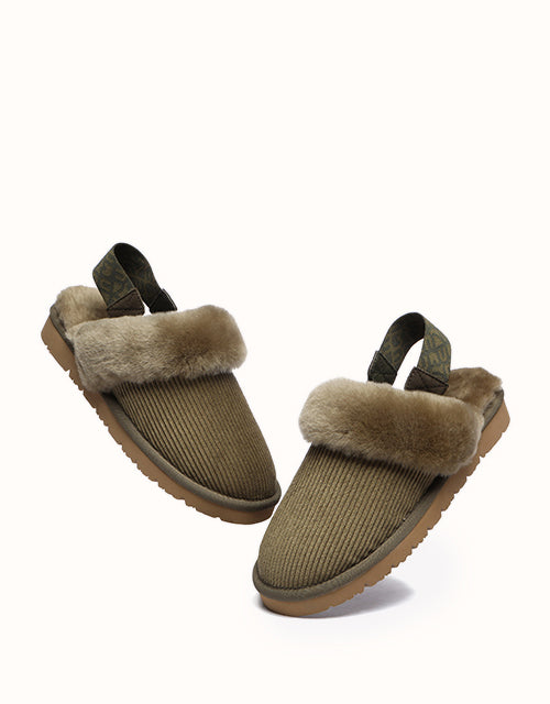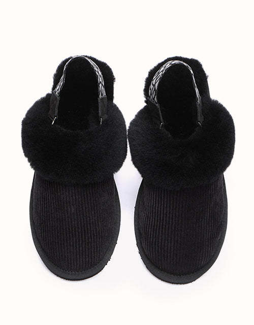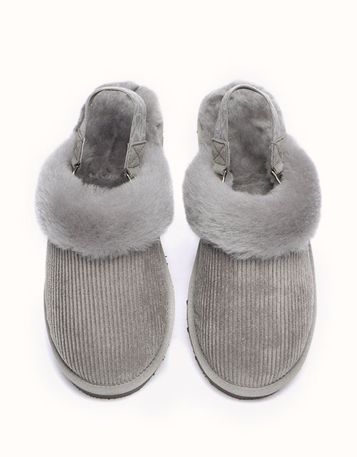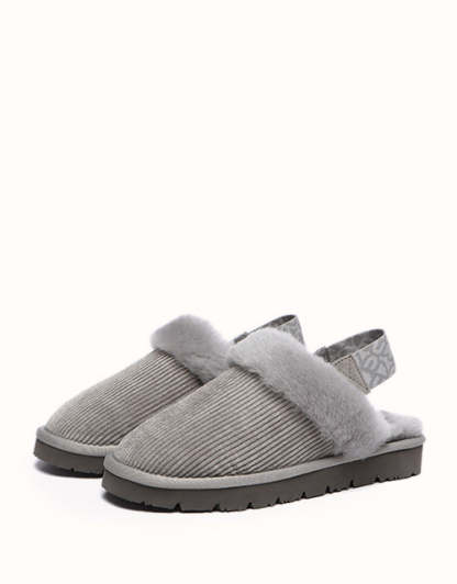 Embrace the cozy charm of autumn and winter with these corduroy-accented shoes, premium Merino wool wraps your feet in 360�� of luxurious softness, with a plush, souffl��-like texture that delivers a spa-like experience with every step. The fuzzy upper is complemented by a detachable elastic strap, offering versatile styling options. Designed for indoor and outdoor comfort, the lightweight EVA sole provides a cloud-like sensation underfoot, ensuring ease of movement and all-day support. These shoes epitomize style and comfort, making them your go-to choice for any setting.