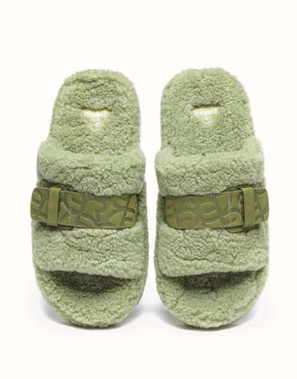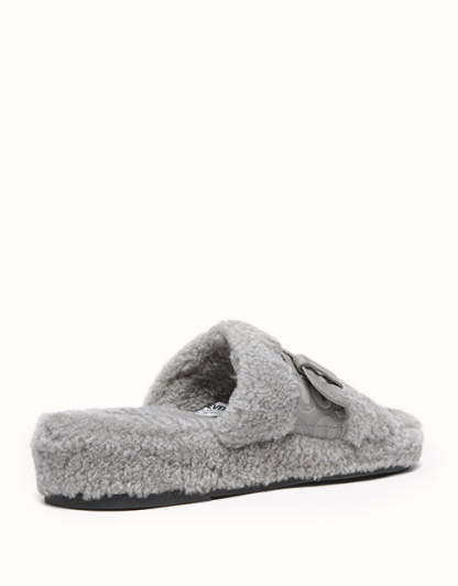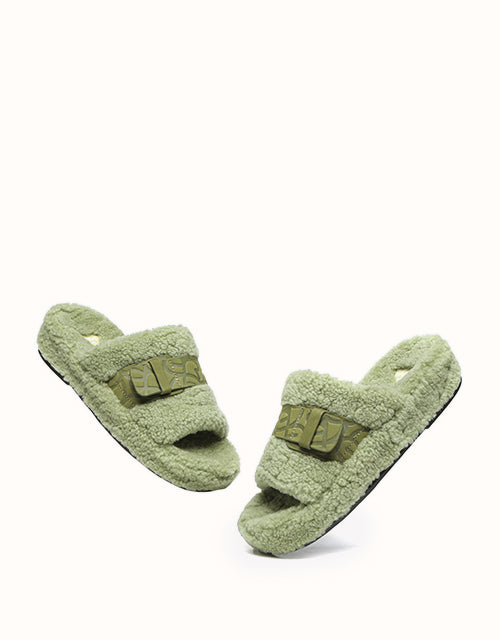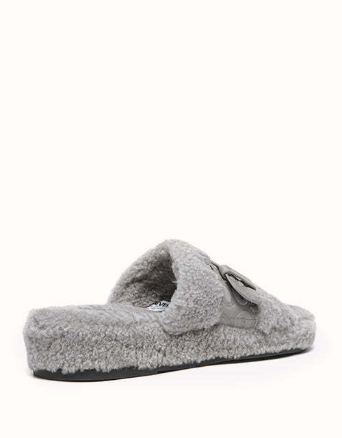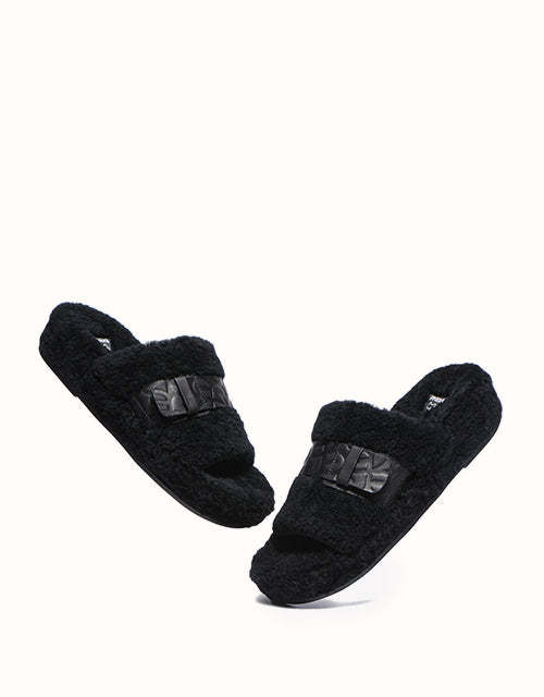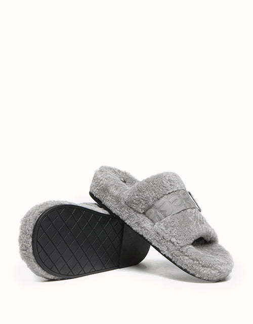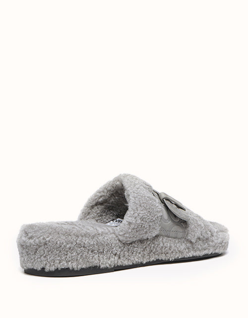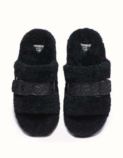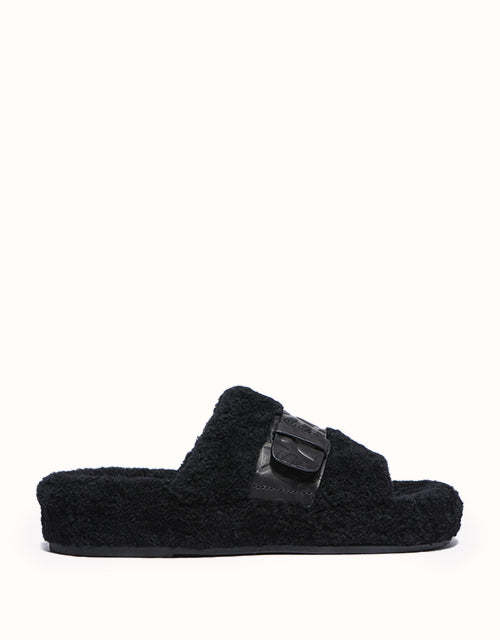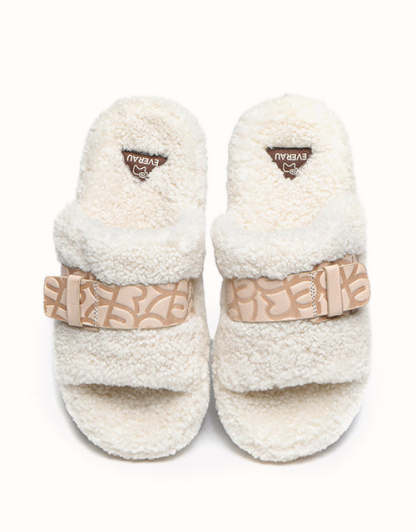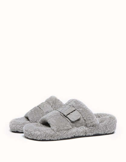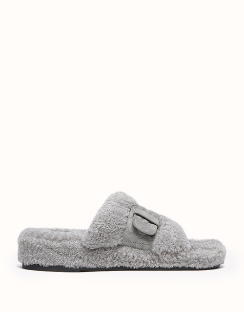 Crafted with curly sheepskin that is ultra-soft and airy, these distinctive slippers add a unique touch of texture to any ensemble. Accented by wave-pattern material and embroidery, they're perfect for pairing with all your favorite looks, from jeans to summer dresses.
