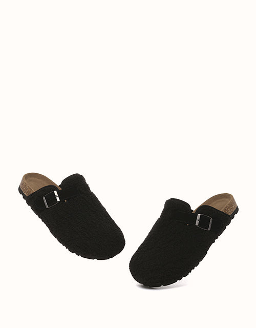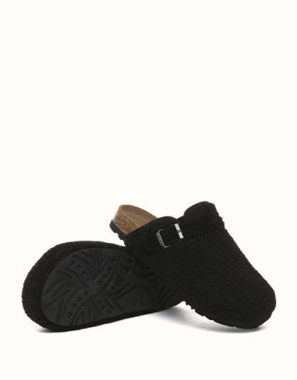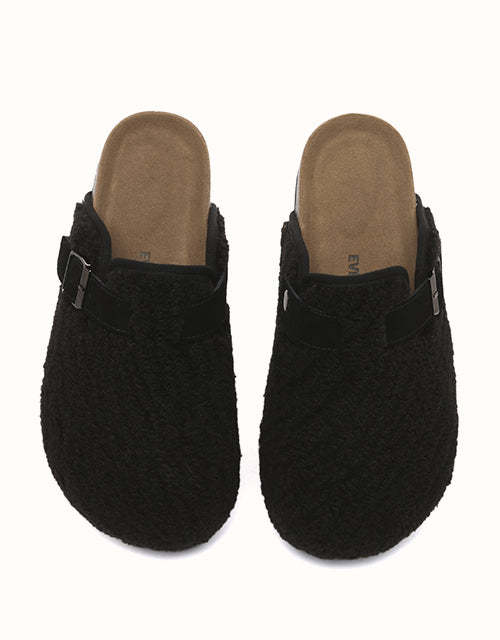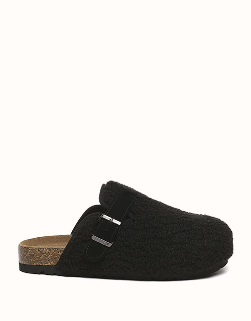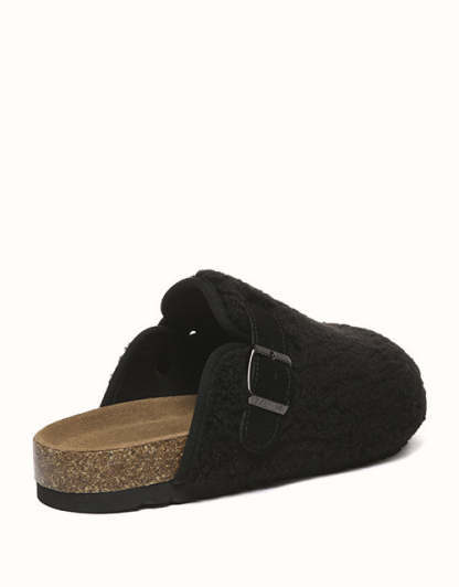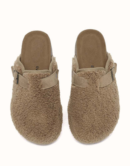 Meet the EVEthtRAU Greta Shearling Buckle Slides��your go-to sandals for effortless comfort. Crafted from premium faux shearling, they offer luxury while keeping your feet cozy and warm. Available in?Chestnut and Black, these versatile slides are perfect for everything from coffee runs to casual outings, adding both style and comfort to every step.