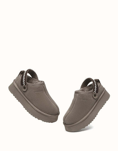 Say hello to the EVEthtRAU Maeve Platform Slingback Slippers��a must-have for trendsetters. Designed with a stylish platform and easy slip-on fit, these slippers effortlessly elevate any look. Available in a range of colors to match your style, they��re the perfect blend of fashion and function. Made from luxurious sheepskin, they offer exceptional warmth on cooler days while adding a chic touch to your wardrobe.