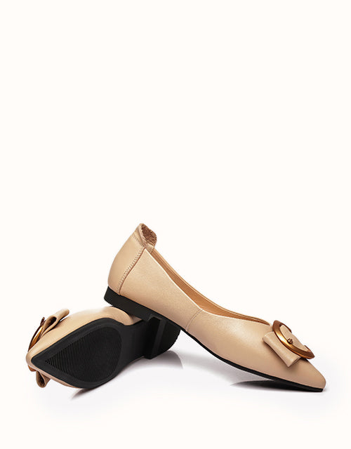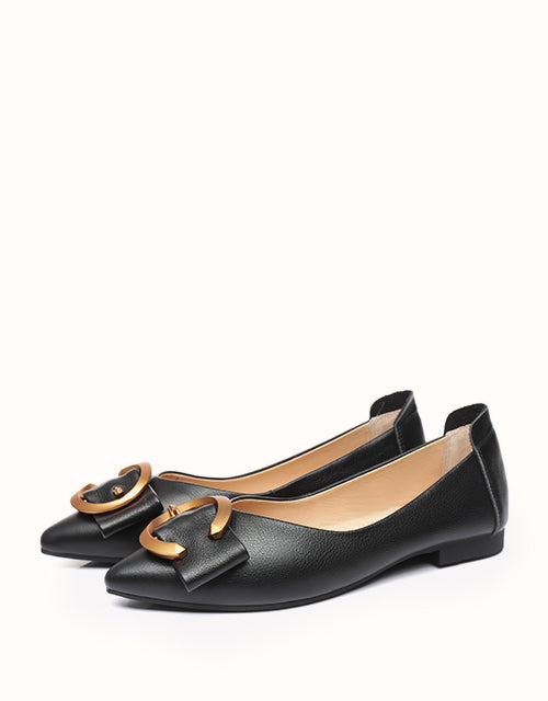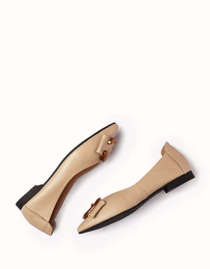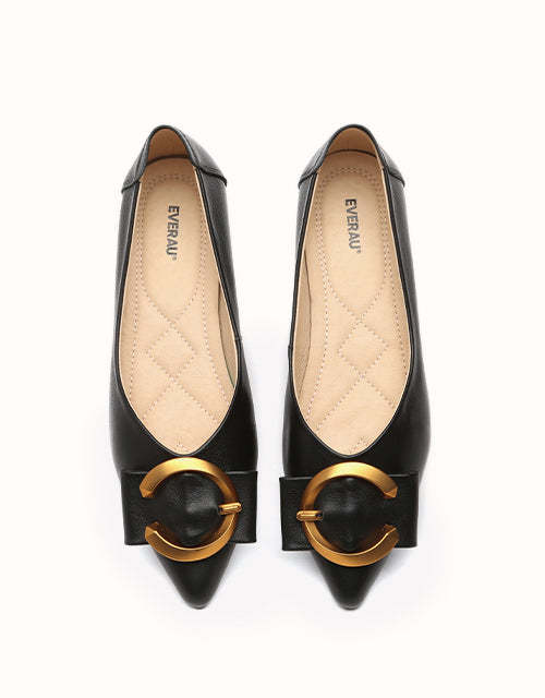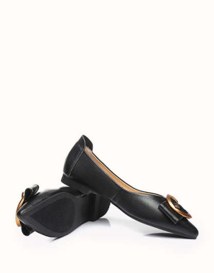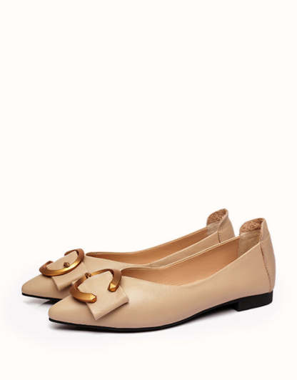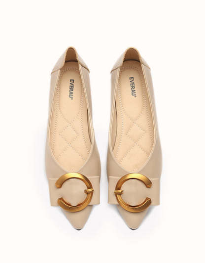 Enhance your outfit with a hint of effortless charm with the EVEthtRAU Pari Buckled Ballet Flats. Featuring a timeless ballet flat design, the gold buckle detail adds a refined touch, perfectly pairing with your favorite jewelry. Available in classic cream and black, these versatile flats are ideal for styling with a tailored blazer and trouser set or a flowing spring maxi dress, making them a go-to choice for any occasion.