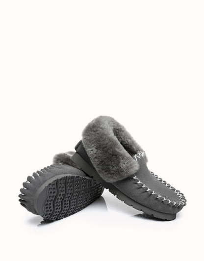 At home comfort, Look no further! Pop these on and you'll stay comfy and warm, with its fully sheepskin-lined interior providing the perfect relaxation spot for your feet. The detail stitching gives them such a unique feel and will keep your feet perfectly secure. They also debut as the perfect present!