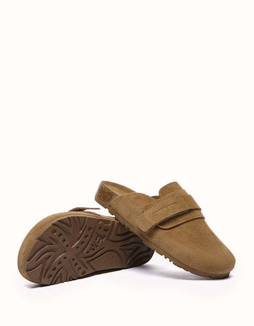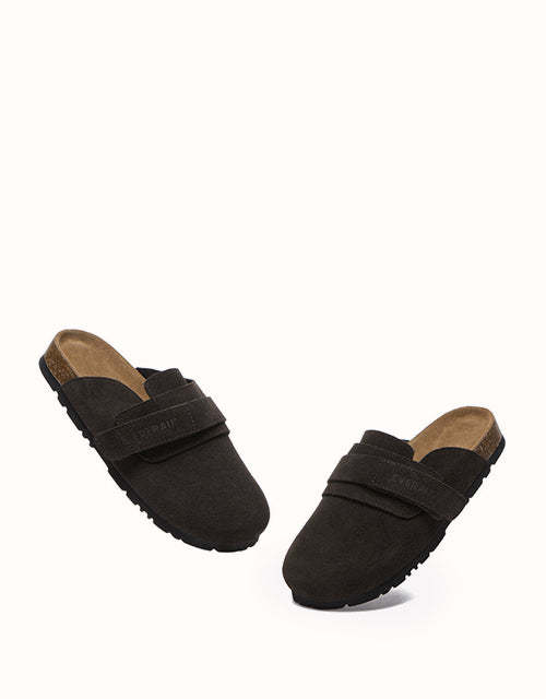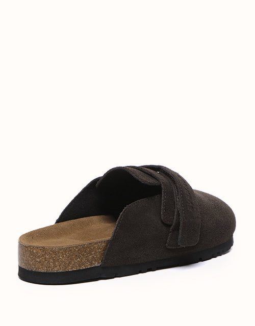 Designed with ergonomic precision, these shoes feature a boat-shaped functional footbed for optimal support. The biomimetic heel pad with a cup-shaped groove cradles the heel and protects the ankle, while side arch support aligns with the foot's natural curve to reduce pressure and enhance stability. Stylish details include adjustable double Velcro straps for a layered aesthetic, a half-covered slip-on design for effortless wear, and a durable thick sole made from lightweight EVA foam for superior cushioning, grip, and wear resistance.