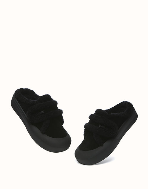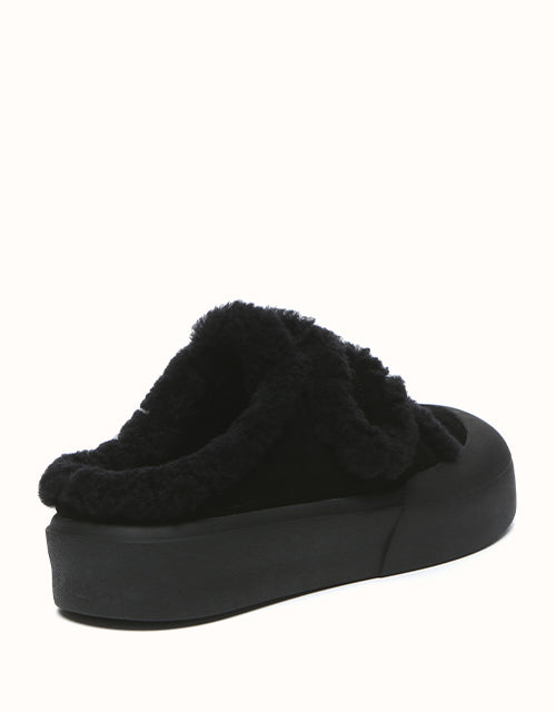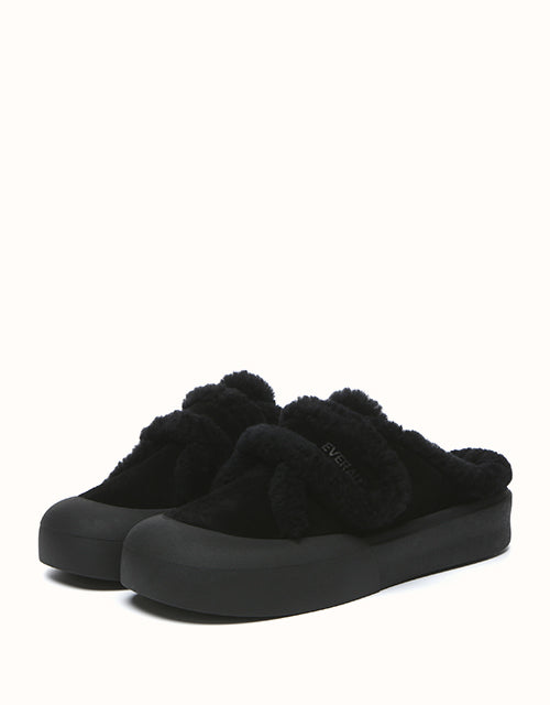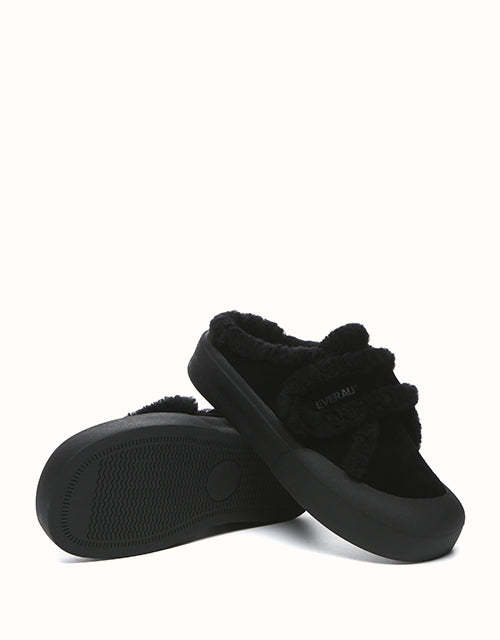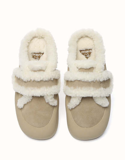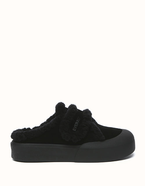 The EVEthtRAU Stacia Shearling Lined Slippers are a must-have for all-day comfort and versatility. Perfect for both lounging at home and stepping out, they feature a natural wool shearling lining that wicks away moisture, keeping your feet cool in summer and warm in winter. With a sleek design and soft shearling trim, these slippers effortlessly complement any outfit.