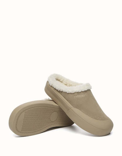 The EVEthtRAU Staney Wool Slippers are the perfect blend of style and comfort. Featuring breathable sheepskin, a cushioned rubber outsole, and a sleek design, they offer everything you need in a slipper. Available in Sand and Black, they effortlessly complement any outfit, making them ideal for both day and night wear.