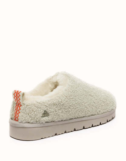 This UGthtG slipper features a trendy teddy fleece upper and plush Merino wool lining for ultimate warmth and comfort. With a lightweight EVA sole and timeless autumn/winter tones, it pairs effortlessly with skinny jeans, oversized knits, or a long coat for a chic winter look.