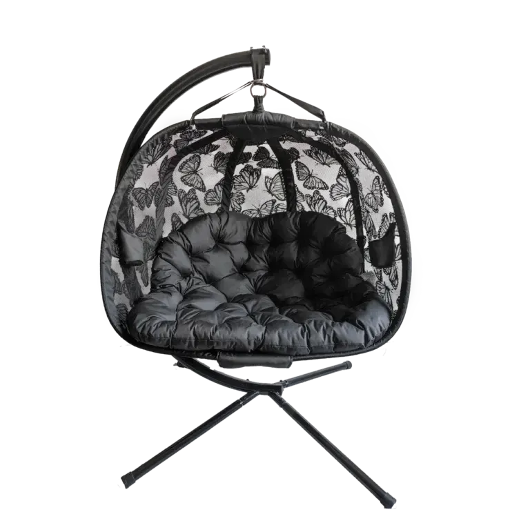 This elegant hanging chair combines striking design with optimal comfort for relaxation. Set it up to take a break and fully enjoy your gardening time! Delivered in a convenient box containing the chair, stand, screws, and cushions.
