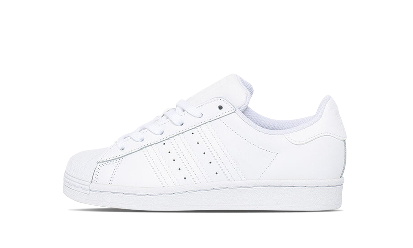 The Supthterstar GS 'White' shoe features a classic design in a clean white colorway, making it a versatile and timeless addition to any sneaker collection.