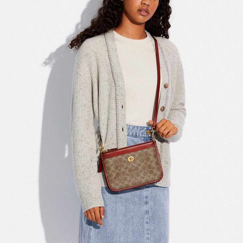 Detachable strap with 21 1/2" drop for shoulder or crossbody wear